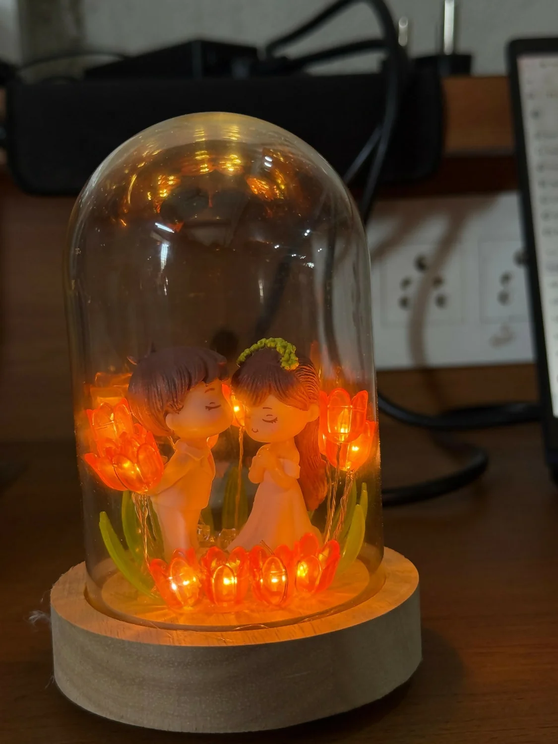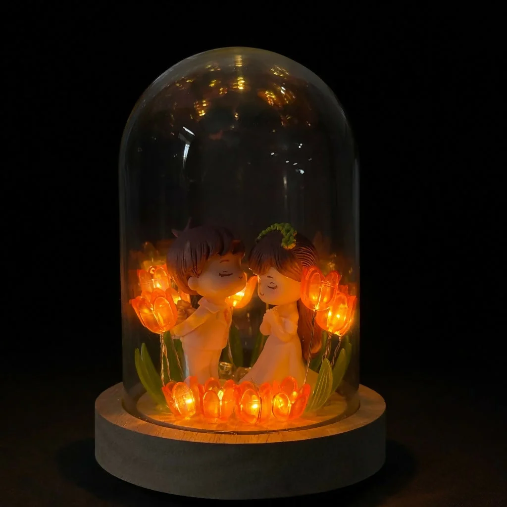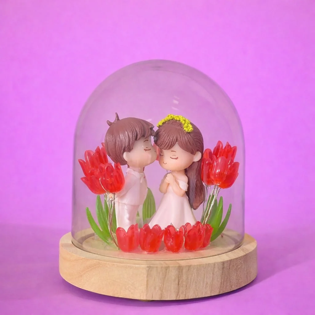Add a touch of warmth and charm to your space with this beautifully designed couple dome lamp. Featuring a cute couple figurine inside a clear dome, surrounded by soft glowing lights, this décor piece creates a calm and cozy ambience. The elegant wooden-style base enhances its premium look, making it ideal for bedrooms, side tables, or décor shelves. A thoughtful decorative gift that brings emotions and elegance together for special moments.