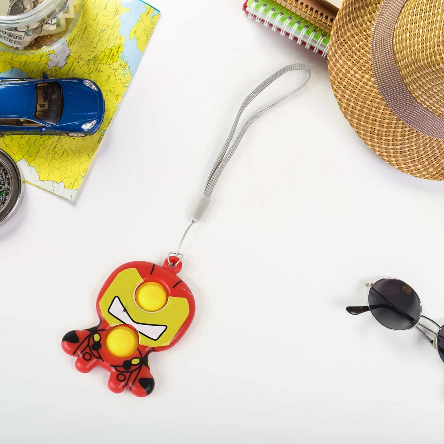 This vibrant, -themed push pop bubble keychain is the perfect fusion of fun, functionality, and stress relief. Designed in an eye-catching cartoon figure with bold red and yellow tones, this compact fidget toy is ideal for keeping hands busy and minds calm. With two tactile bubbles that deliver a satisfying "pop" sound when pressed, it serves as both a portable sensory toy and a charming keychain accessory. Lightweight yet durable, it includes a secure wrist strap, making it easy to attach to backpacks, pencil cases, or keys. Whether you're on the go, studying, or simply need a moment to relax, this keychain fidget toy offers an engaging, portable solution for stress and sensory relief.