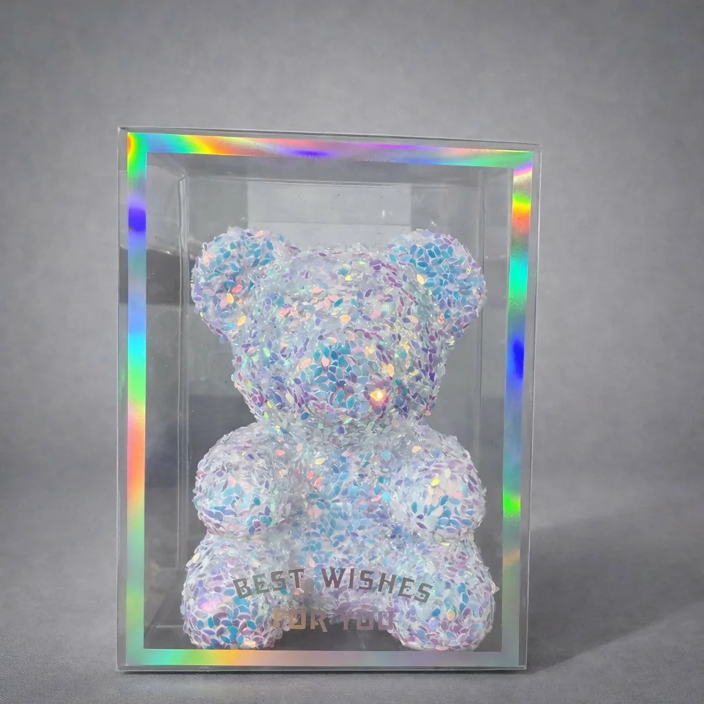 • Crystal Glitter Teddy Design – Decorative teddy bear covered with sparkling reflective glitter pieces.