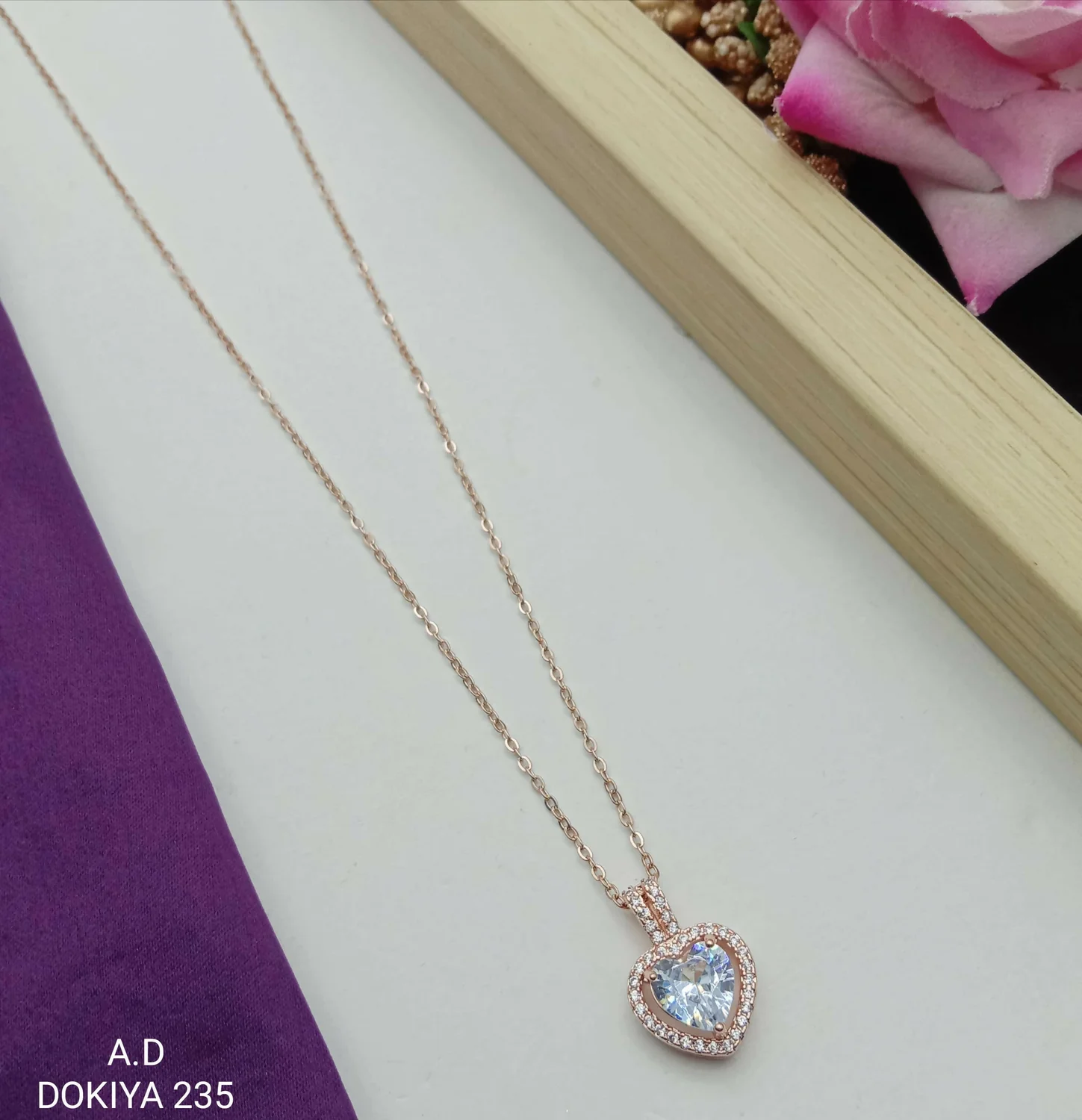Be the first to review Crystal Inset Heart Charm on Rose Gold Chain And Pendal!