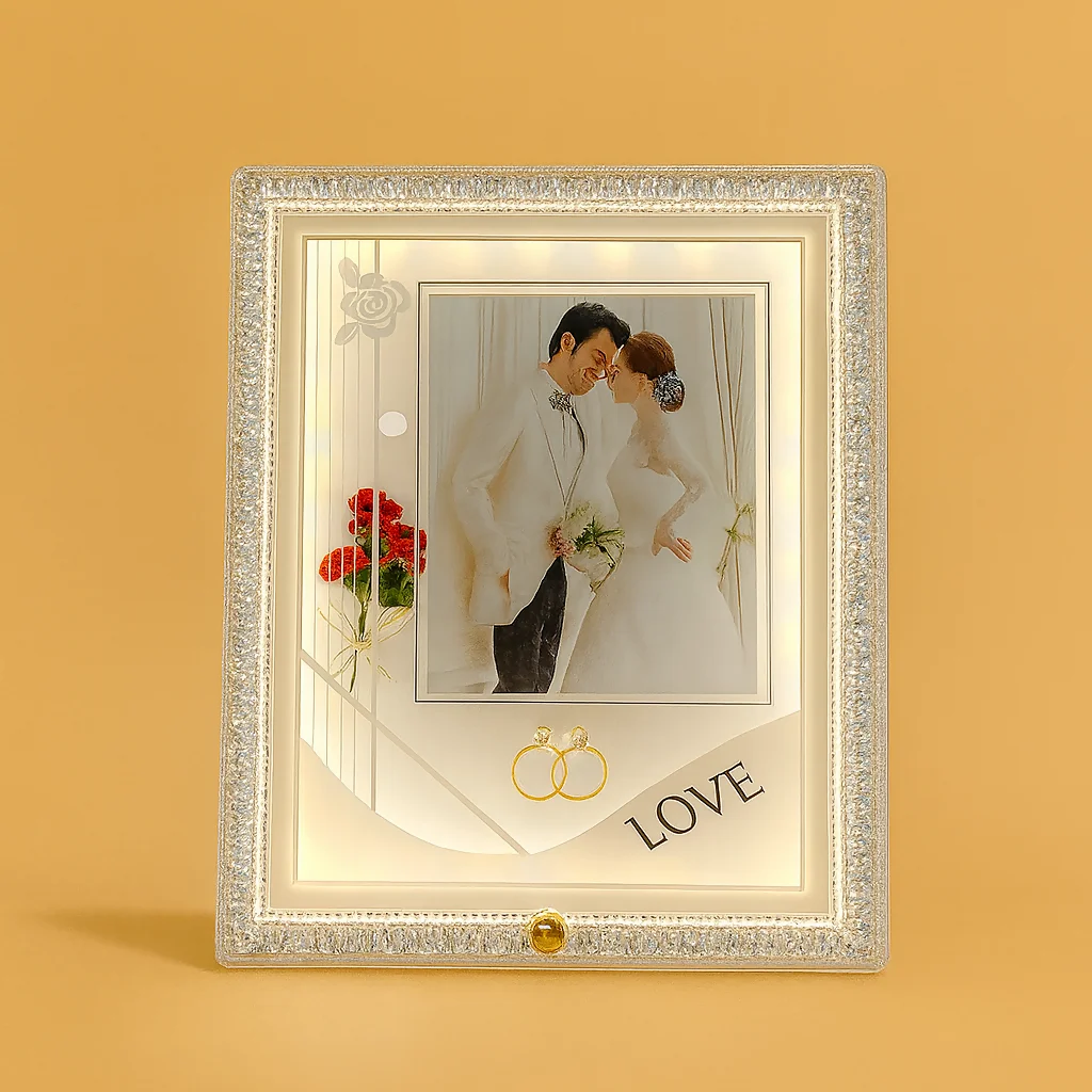 Crystal LED Frame – Elegant white LED glow highlights your cherished memories.