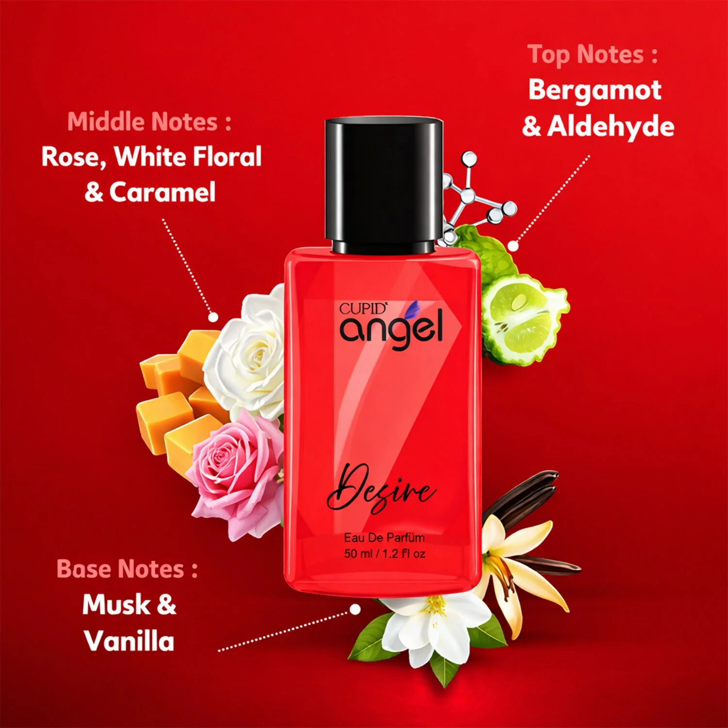 · Desire perfume by Cupid Ltd is a Parfum, a rich fragrance that gives you an instant burst of energy while keeping you cool, calm and collected, adding a woody confidence to your demeanour.