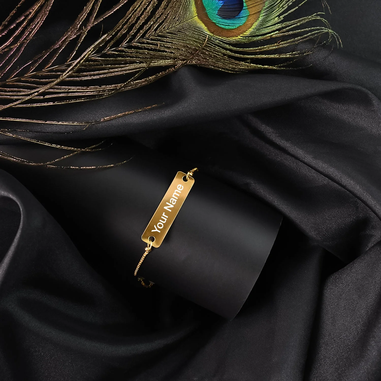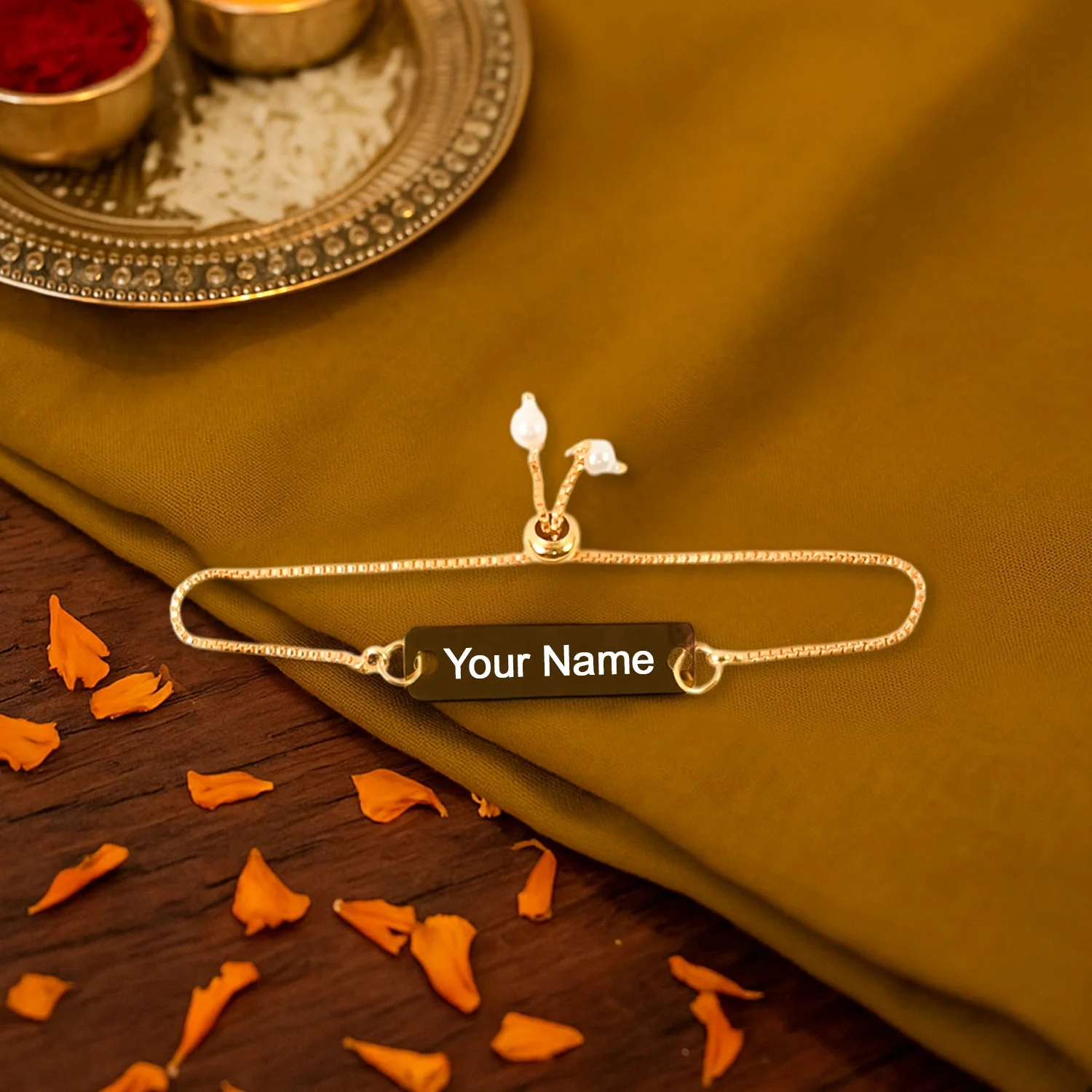 Make it personal with this elegant custom name bracelet featuring a polished gold-tone finish and adjustable chain. Designed with a sleek nameplate and pearl-accented ends, this bracelet is perfect for anyone who values style with a personal touch. Customize it with any name or word of your choice and wear it your way — every day or on special occasions.