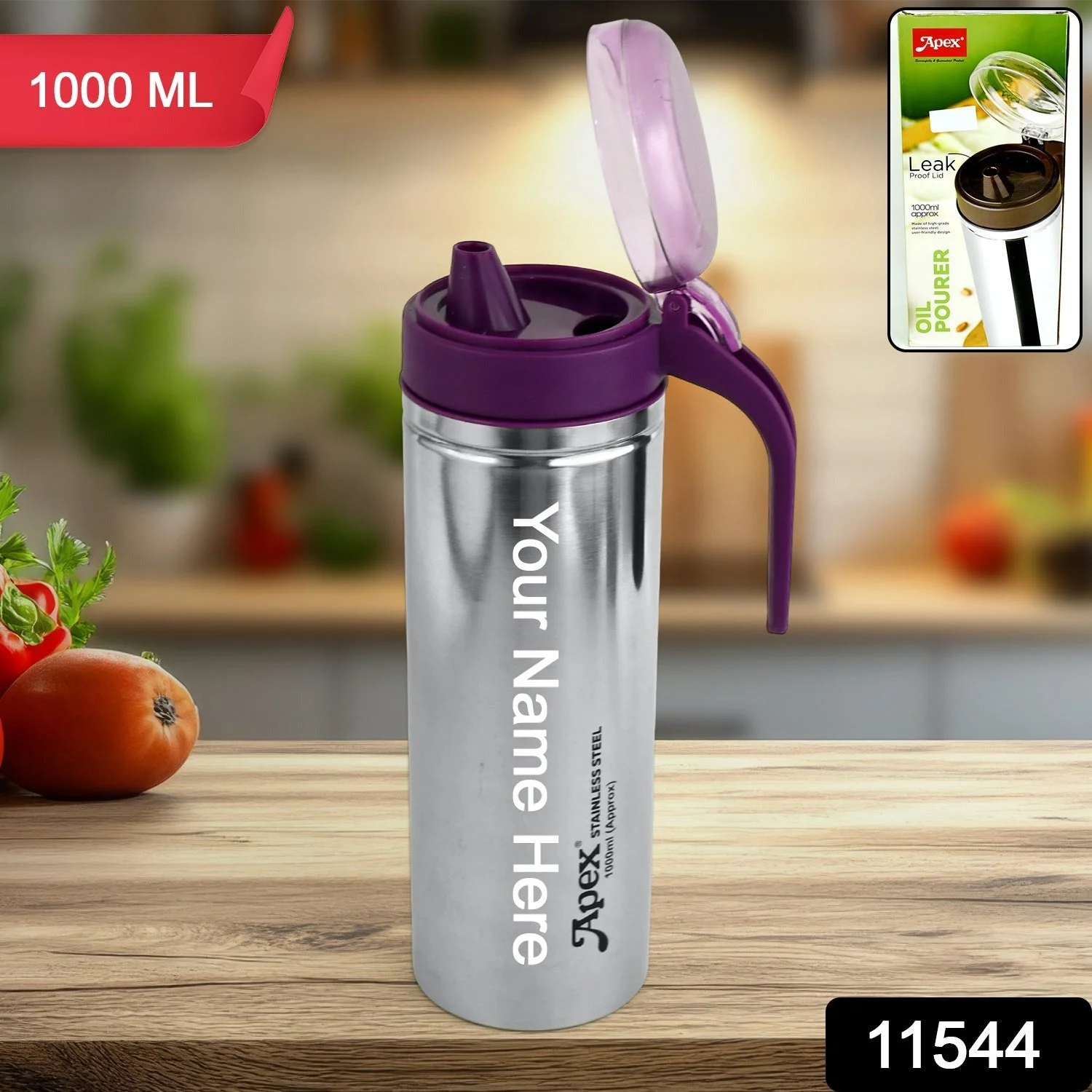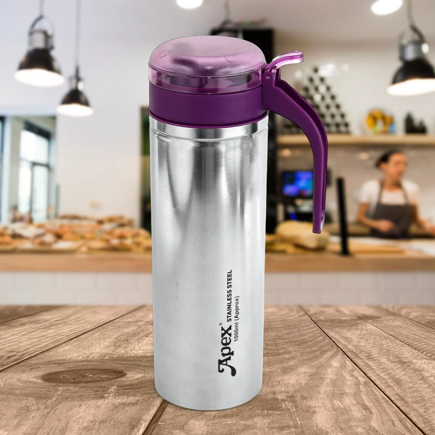 Apex 1000ml Approx. Stainless Steel Oil Pourer – High-Grade Steel Dispenser with Anti-Drip Spout and Easy Grip Handle – Ideal for Cooking Oil, Vinegar, Ghee & Liquid Seasoning Storage (1 Pc)
