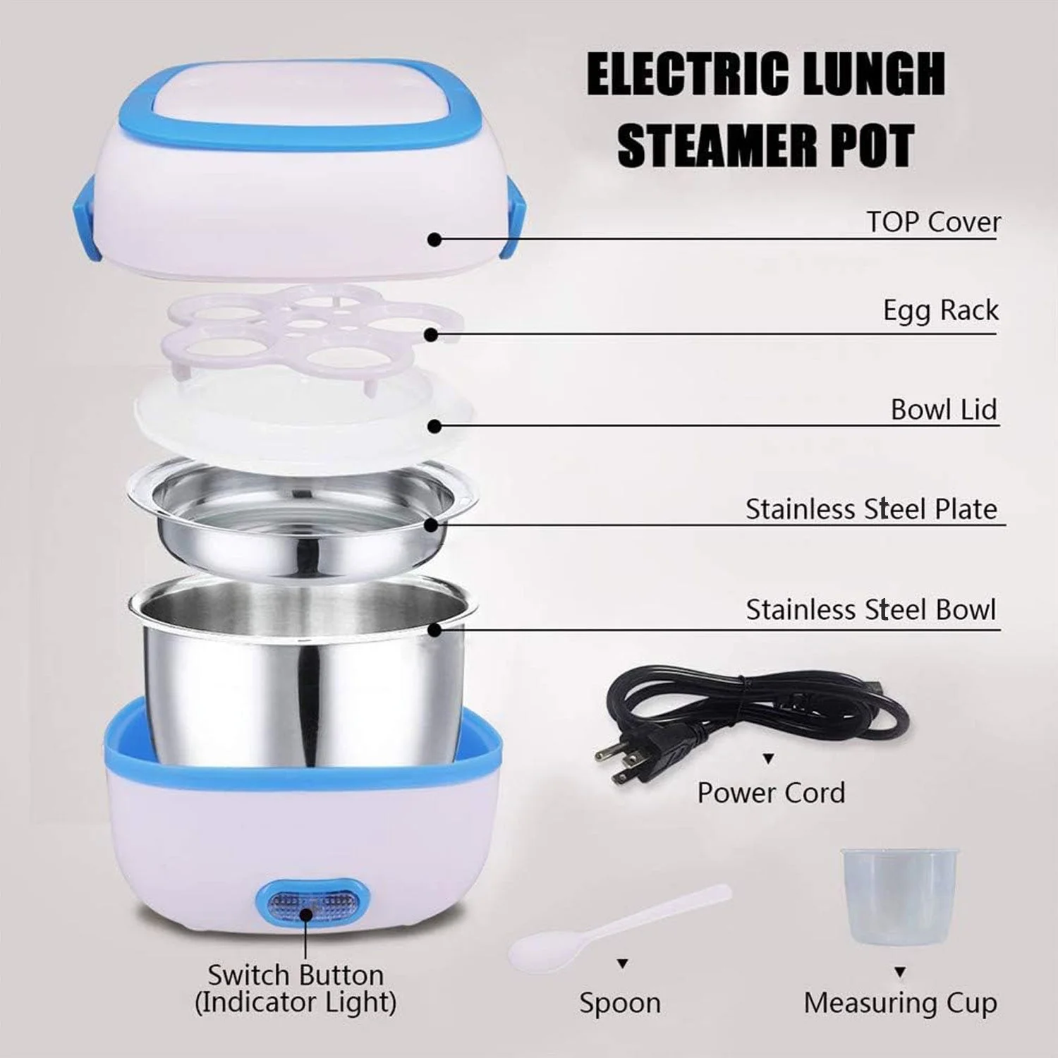 10027 Electric Lunch Box Portable Food Warmer Food Heating Lunch Box Removable Food-Grade Stainless Steel Compartments, 220V 200W, for Car, Truck, office