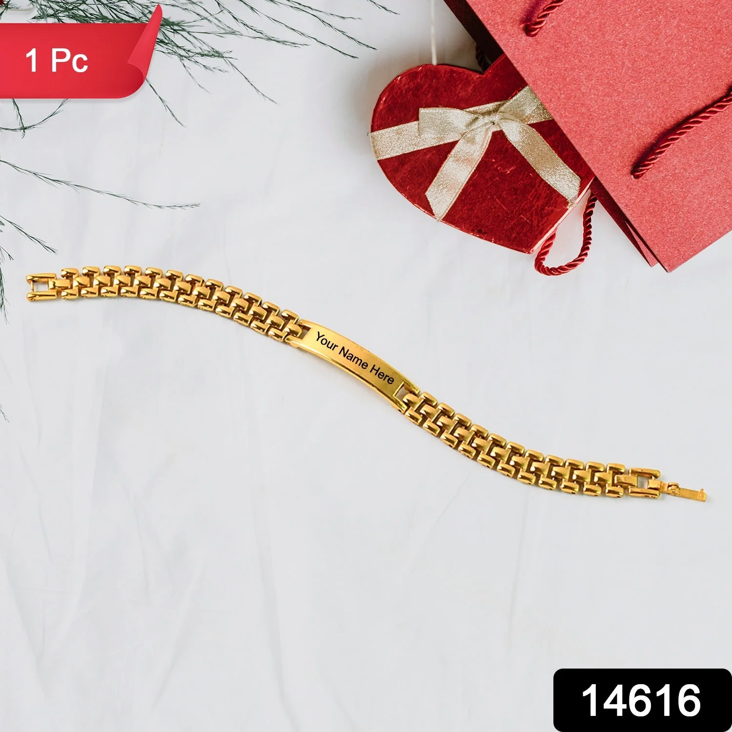 Customized Golden Chain Bracelet for Men with Name Engraving – Stylish Personalized for Brother, Bhaiya, Husband – Elegant Reusable Gift for Raksha Bandhan – 1 Pc