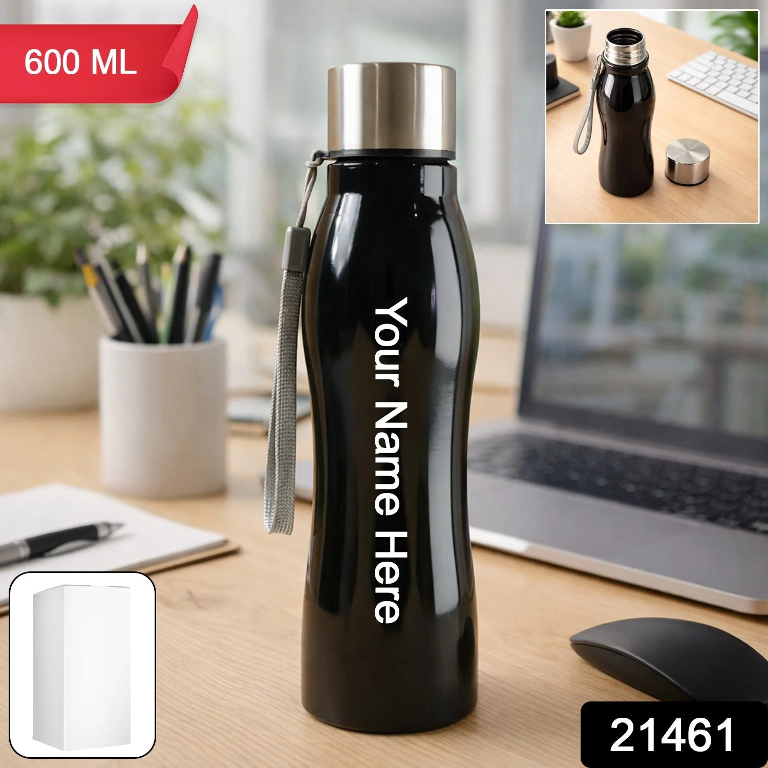 Stay refreshed throughout the day with this 600 ML stainless steel water bottle designed for everyday hydration needs. Made with a durable metal body, it offers long lasting performance and a sleek modern appearance suitable for office desks, school bags and travel use. The secure screw cap ensures a leak resistant experience, while the attached carry strap makes it easy to handle and transport. Its compact and stylish design fits comfortably in backpacks and bottle holders. Ideal for daily use, this reusable bottle is a practical and eco friendly hydration solution.
