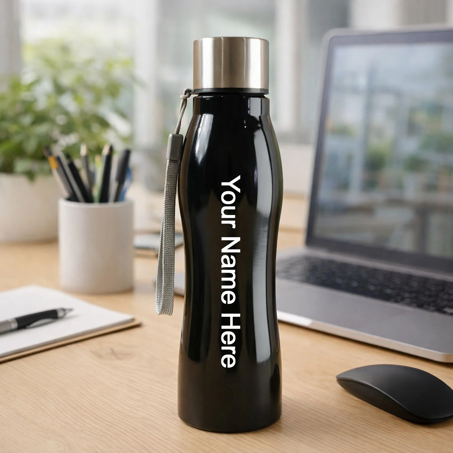 Customize Stainless Steel Water Bottle with Leak Proof Cap and Carry Strap – Reusable Metal Drinking Bottle for Office, Travel, Gym and Daily Use (1 Piece)