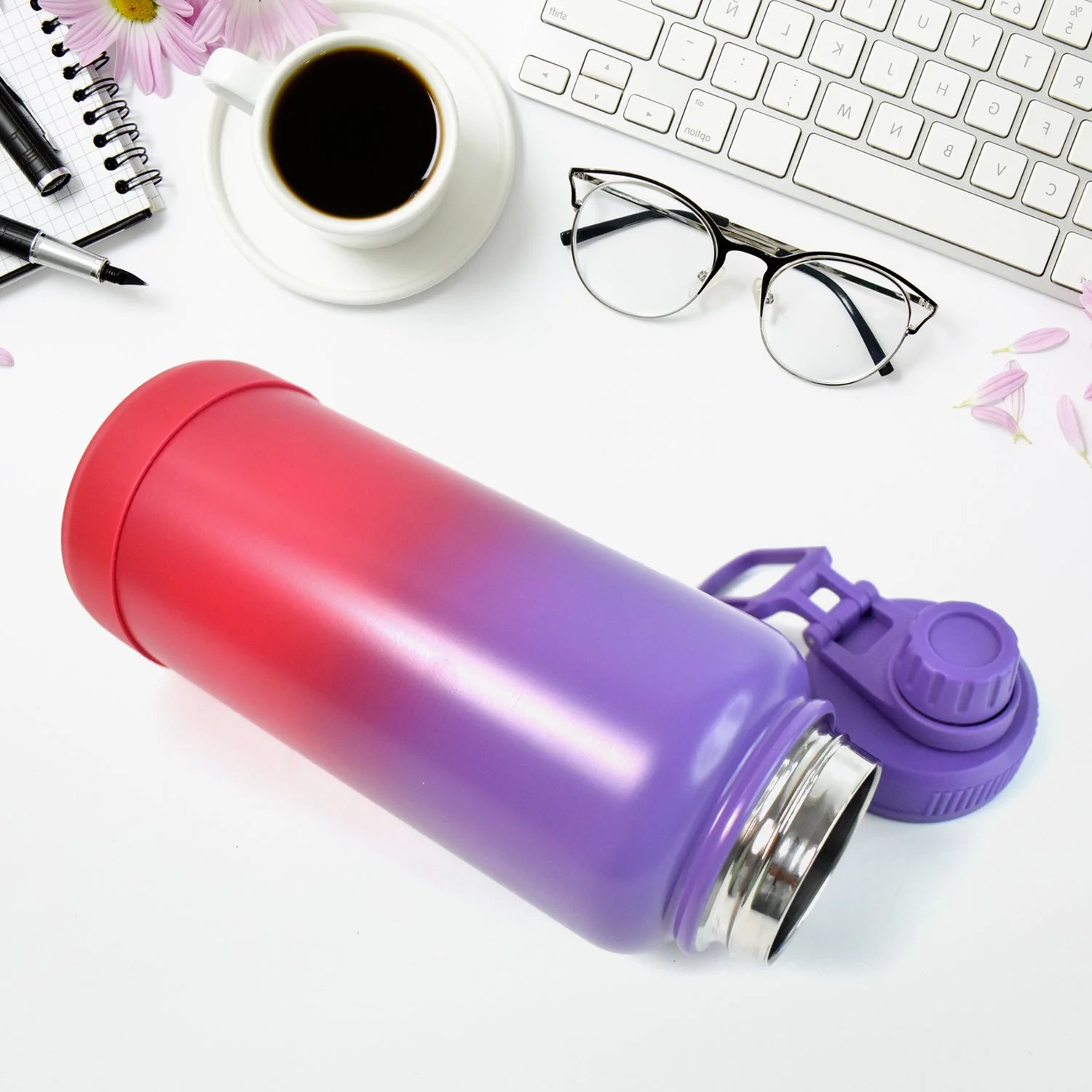 Be the first to review Customize Two Tone Pink Stainless Steel Water Bottle Leakproof Easy Pour Cap (1000ml)!