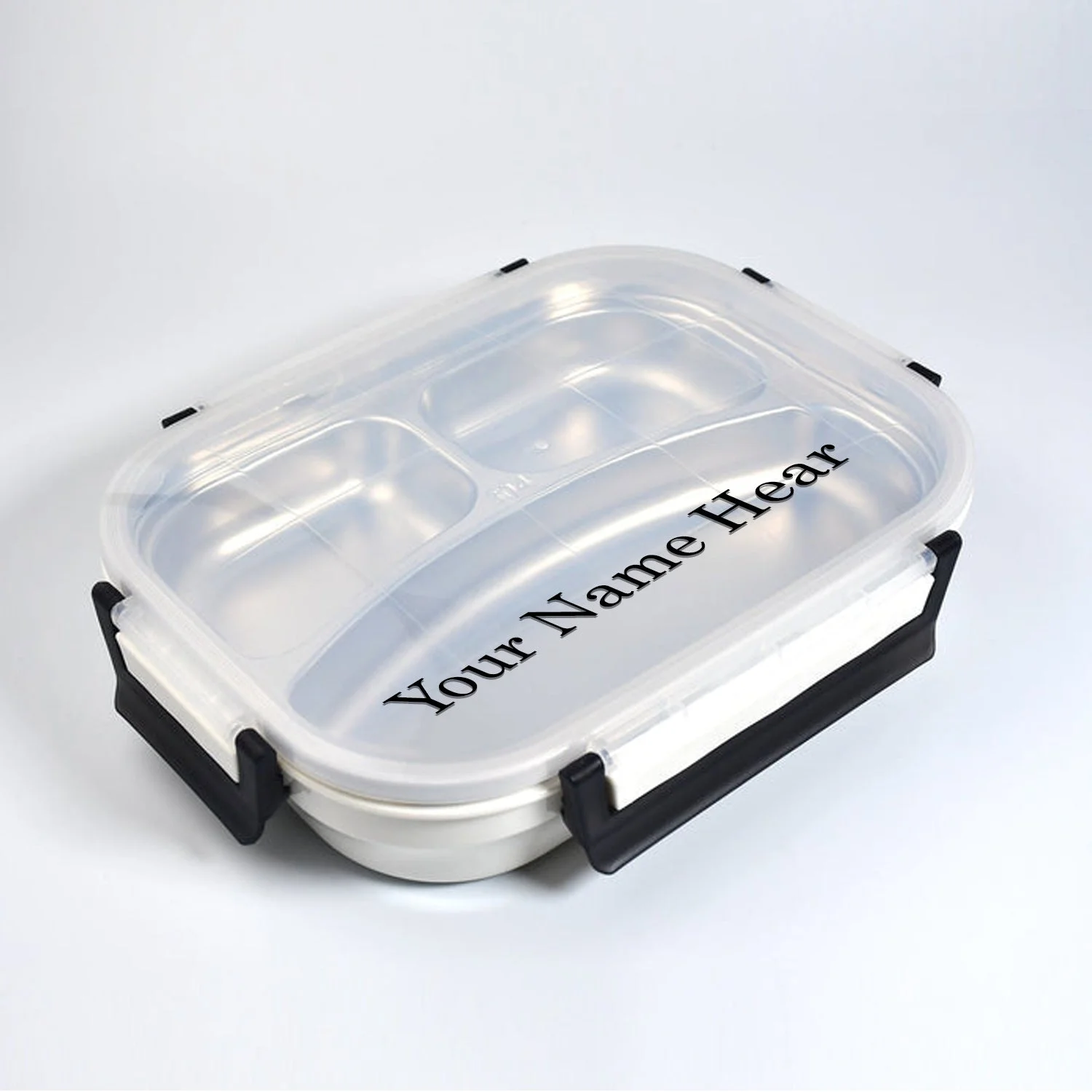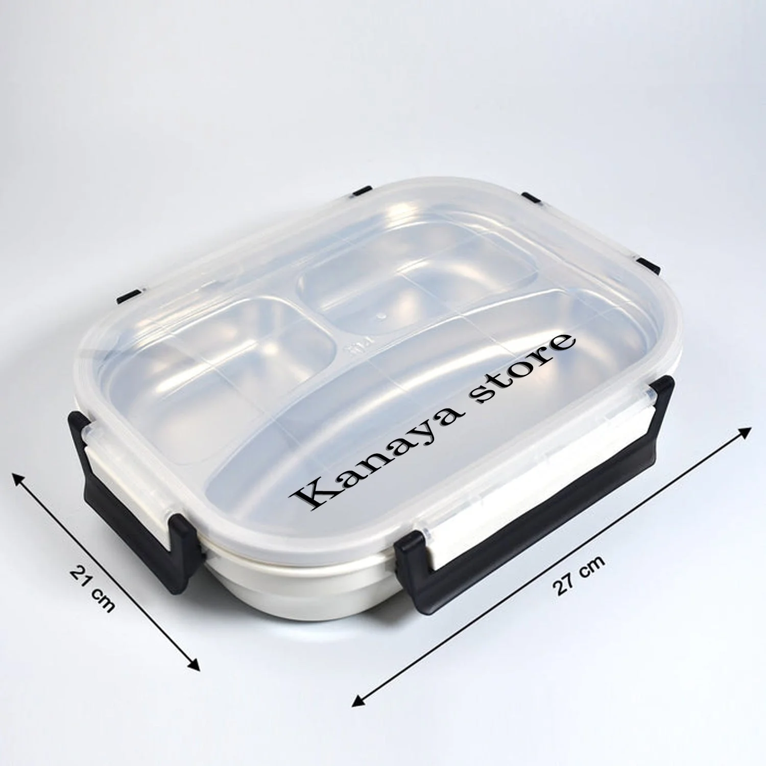 2980 White Transparent Lunch Box for Kids and adults, Stainless Steel Lunch Box with 3 Compartments.