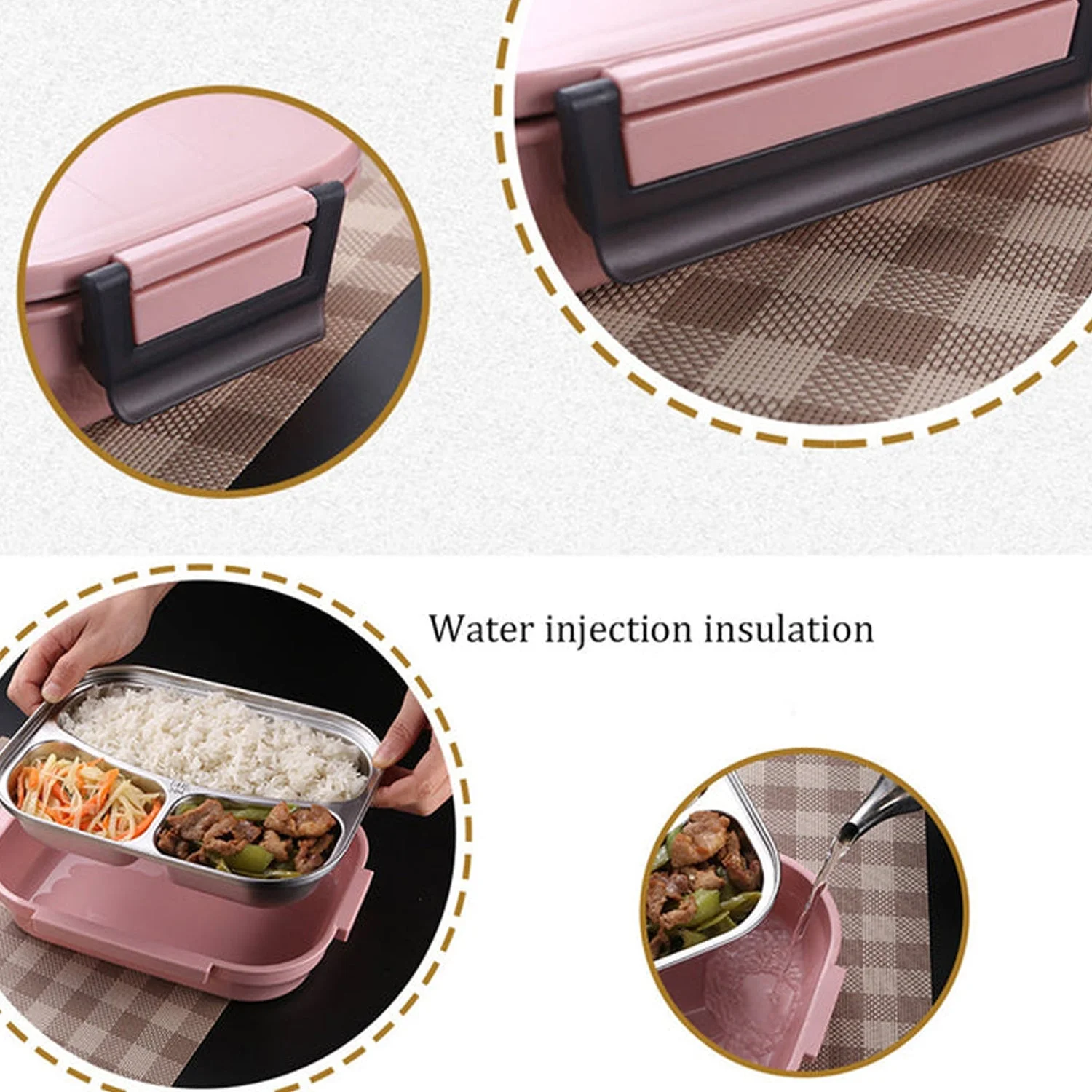 - This stainless steel tray is detachable, because another useful feature of this lunch box is that you can pour some hot water to heat the food before eating. This will keep the original taste of the food.