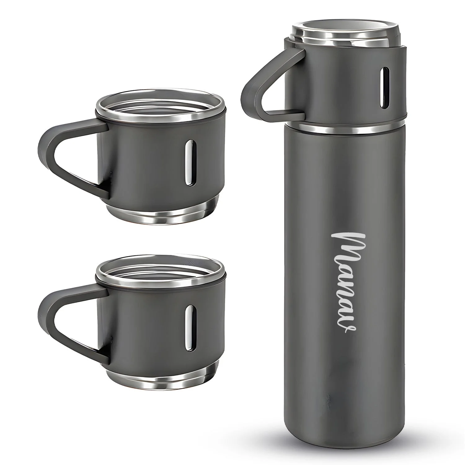 2834 Customized/Personalized Stainless Steel Water Bottle Vacuum Flask Set With 3 Steel Cups Combo | Gifting Custom Name Water Bottle | Gifts for boyfriend/Girlfriend/Employee | 500ML |