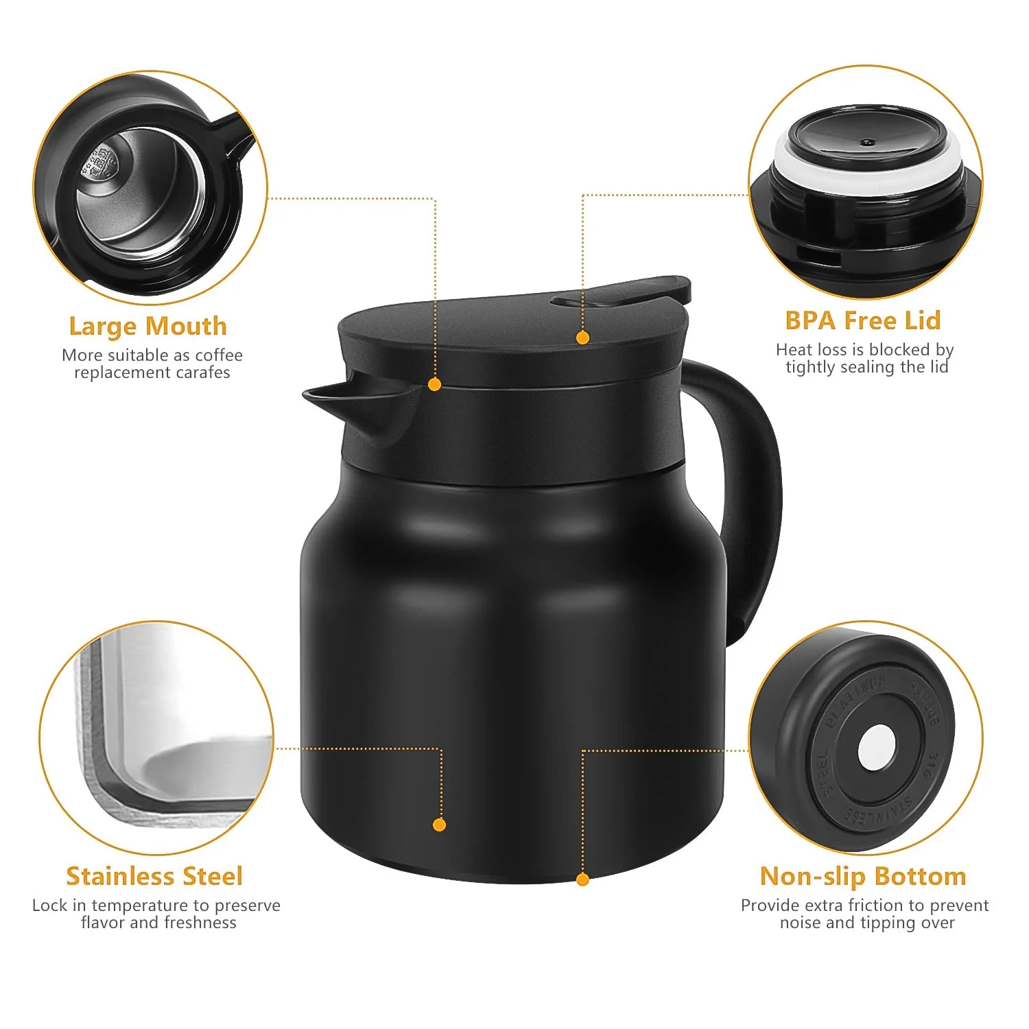 - Great Retention Function: Heat & Cold Retention with double-walled stainless steel vacuum insulation design. An ideal pot for coffee, tea, beverage, milk etc.