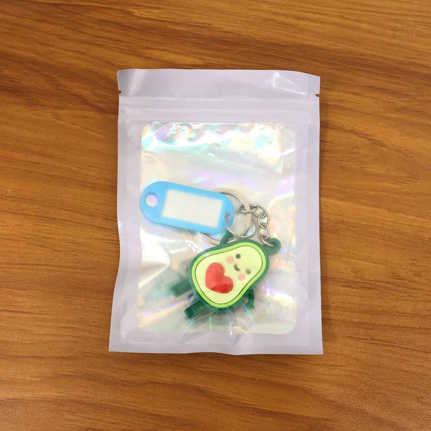 This cute avocado cartoon keychain is a fun and practical accessory designed to brighten your everyday essentials. Featuring a cheerful avocado character with a heart detail and an attached name tag holder, it helps you easily identify keys, bags, or luggage at a glance. The compact and lightweight design makes it ideal for daily use without adding bulk, while the sturdy metal key ring ensures secure attachment. Perfect for personal use, gifting, or kids’ accessories, this keychain combines playful charm with everyday utility.