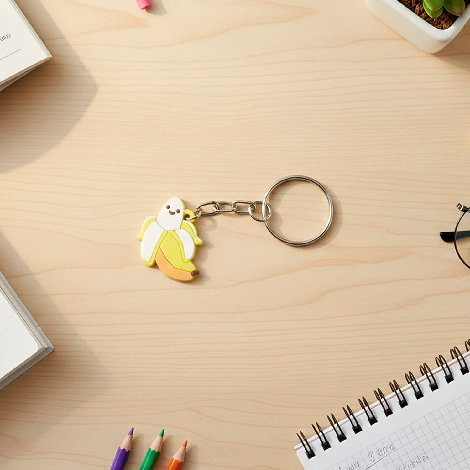 Cute Banana Shape Cartoon Keychain with Metal Ring – Fun Decorative PVC Key Holder for Bag, Backpack, Car Keys & Daily Use (1 Pc)
