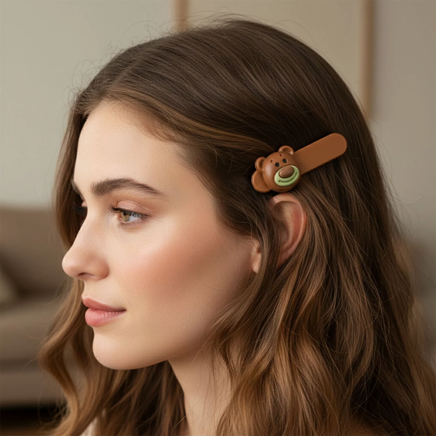 This adorable set of bear face decorative hair clips is designed to bring a playful yet stylish charm to everyday hairstyles. Each clip features a smooth snap-style mechanism that helps keep hair neatly in place while showcasing a cute bear face detail on the front. The balanced design ensures comfortable wear throughout the day without causing hair pulling or discomfort. Easy to clip on and remove, these hair clips are suitable for side styling, front hair arrangement, or adding a fun decorative touch to simple hairstyles. Perfect for daily use, this set blends practicality with cute cartoon-inspired styling.