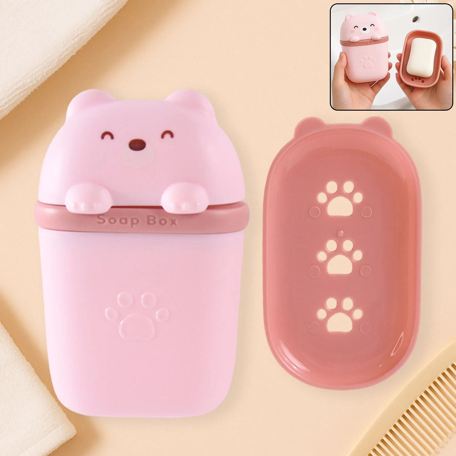 Cute Bear Shaped Soap Case – Portable Travel Soap Box with Draining Tray – Leak-Proof and Hygienic Storage for Bar Soap (1 Pc)