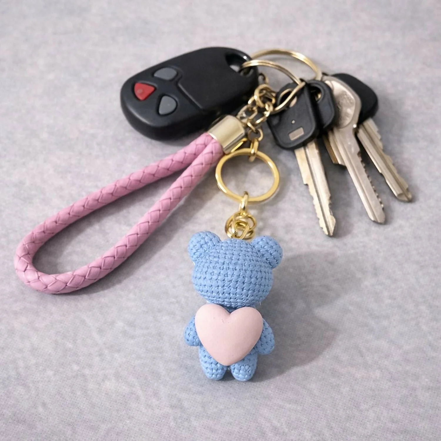 Add a cool and charming touch to your everyday accessories with this adorable blue teddy bear keychain featuring a sweet heart design. Made with a textured teddy finish, premium braided strap, and sturdy metal ring, this keychain is perfect for keys, handbags, purses, backpacks, laptop bags, or car keys. Lightweight yet durable, it keeps your essentials organized while adding a stylish pop of color. A great gifting option for birthdays, anniversaries, Valentine’s Day, or everyday use for girls and women.