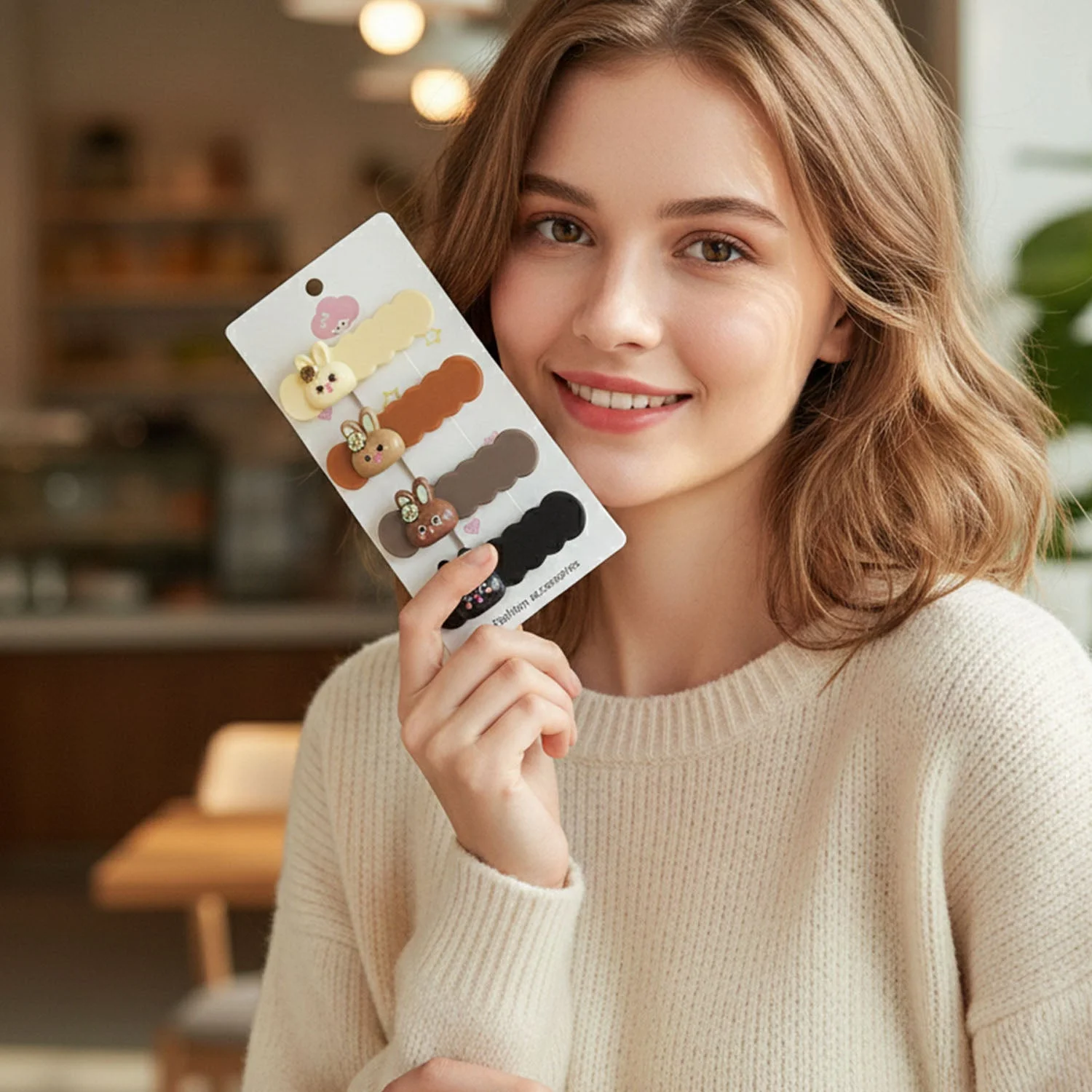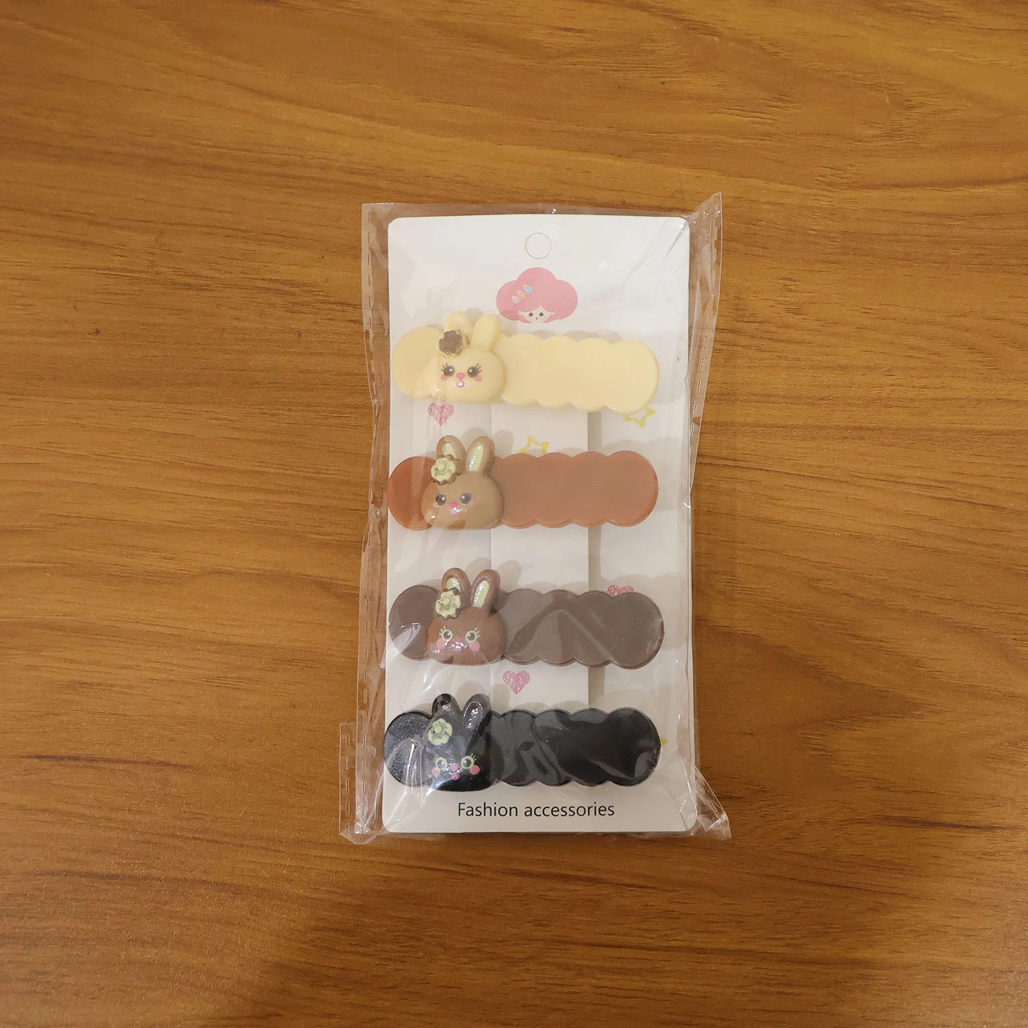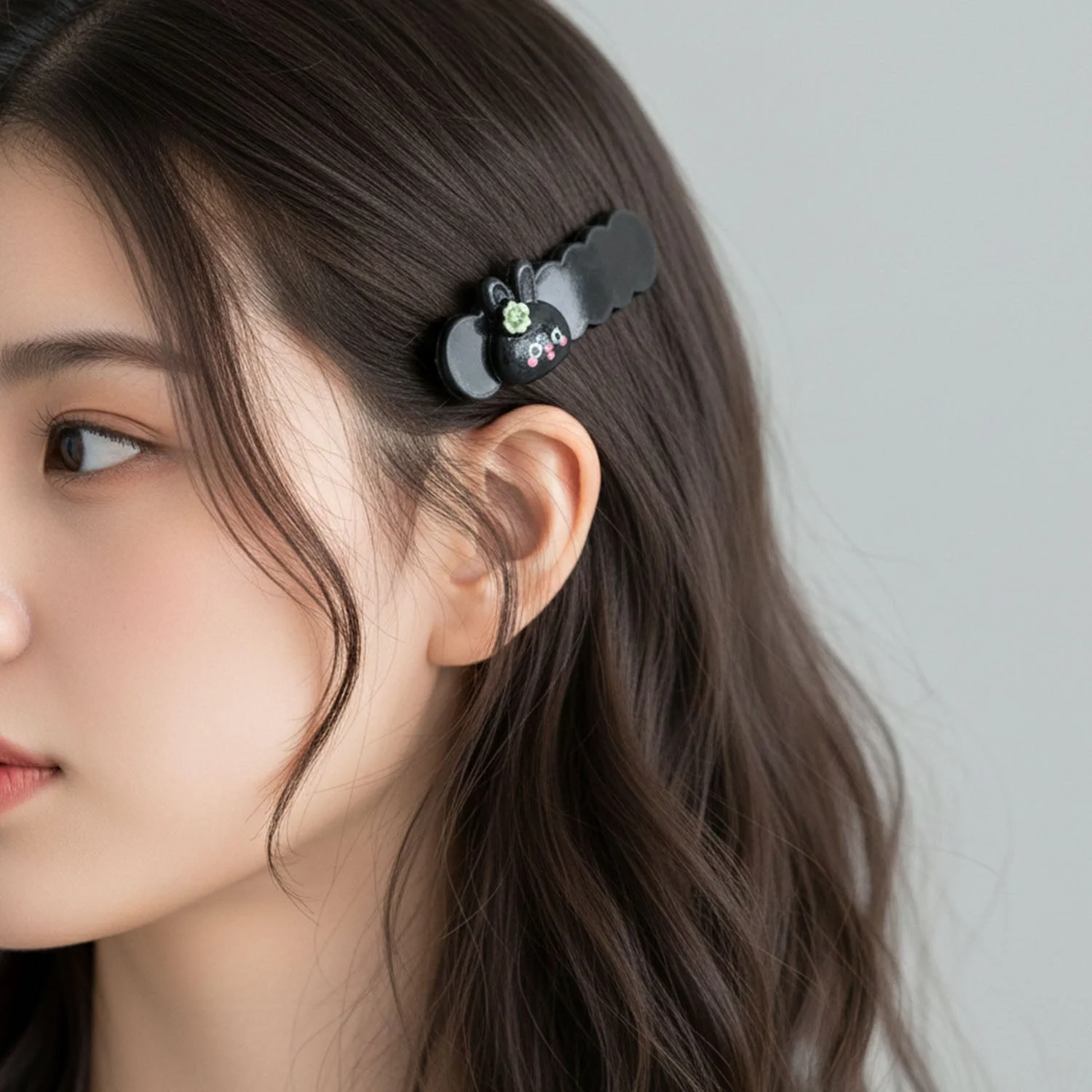This charming set of bunny-themed decorative hair clips is designed to add a playful yet stylish touch to everyday hairstyles. Each clip features a smooth snap-style mechanism that helps hold hair securely while enhancing the overall look with a cute cartoon character accent. The balanced structure allows comfortable use throughout the day without causing hair strain or discomfort. Easy to apply and remove, these clips are suitable for neat side styling, front hair management, or adding a subtle decorative element to simple hairstyles. A perfect combination of utility and design, this set makes a delightful addition to daily hair accessory collections.