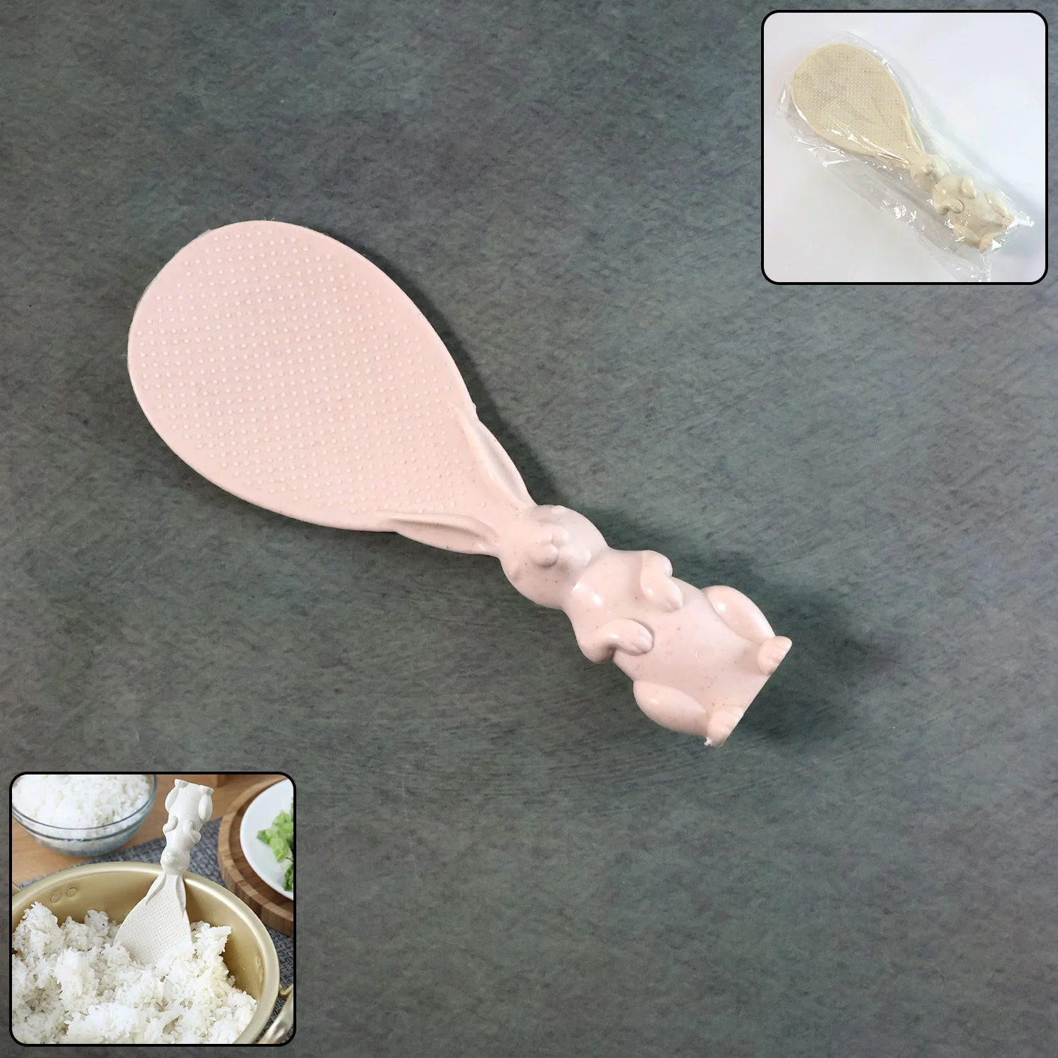 bunny handle rice spoon, cute rice paddle, non stick rice spoon, anti slip rice scoop, textured rice serving spoon, rice mixing paddle, durable kitchen utensil, daily cooking rice spoon, ergonomic rice scoop, fun kitchen utensil, lightweight rice paddle, easy scoop rice spoon, rice serving tool