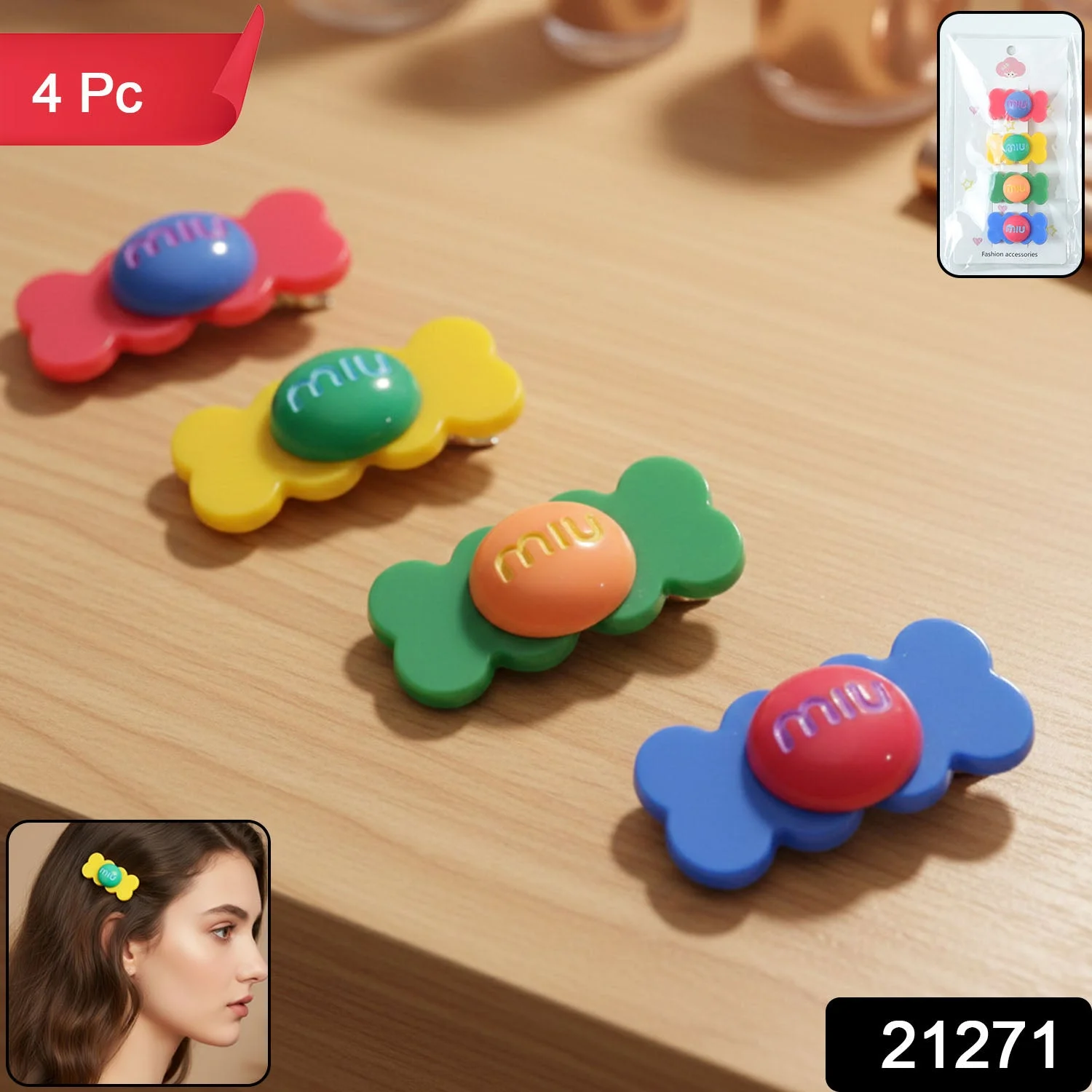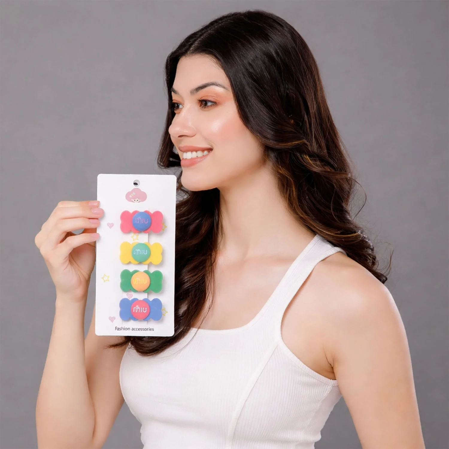 Cute Candy Shape Colorful Hair Clips for Girls & Women – Playful Cartoon Design Snap Hair Accessories for Daily Styling, Casual Wear, College Looks & Fun Hairstyles – 4 Pc Set