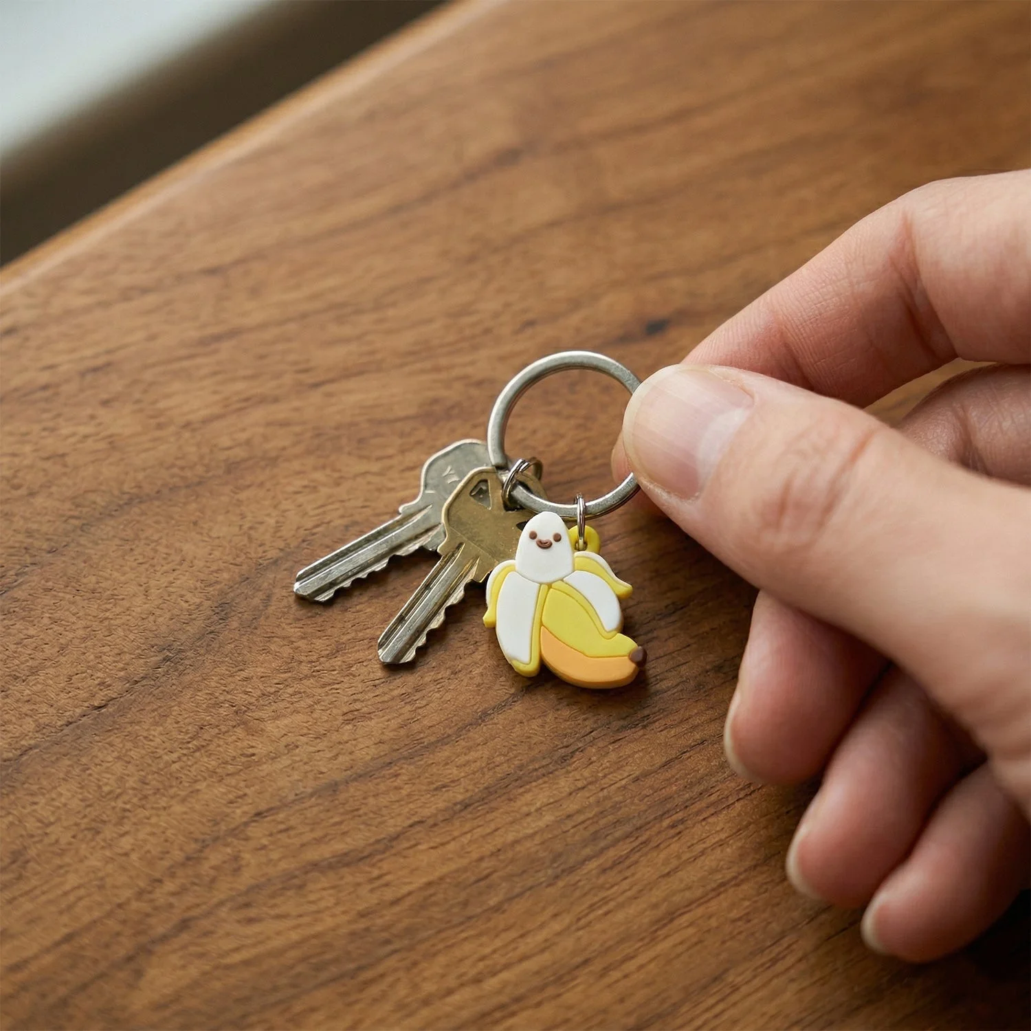 Perfect for sharing, gifting, or return gifts, these banana design keychain for bags accessories attach easily to zippers and keys. The banana shape bag charm set adds a quirky and fun style. A novelty fruit keychain pack designed for everyday accessories.