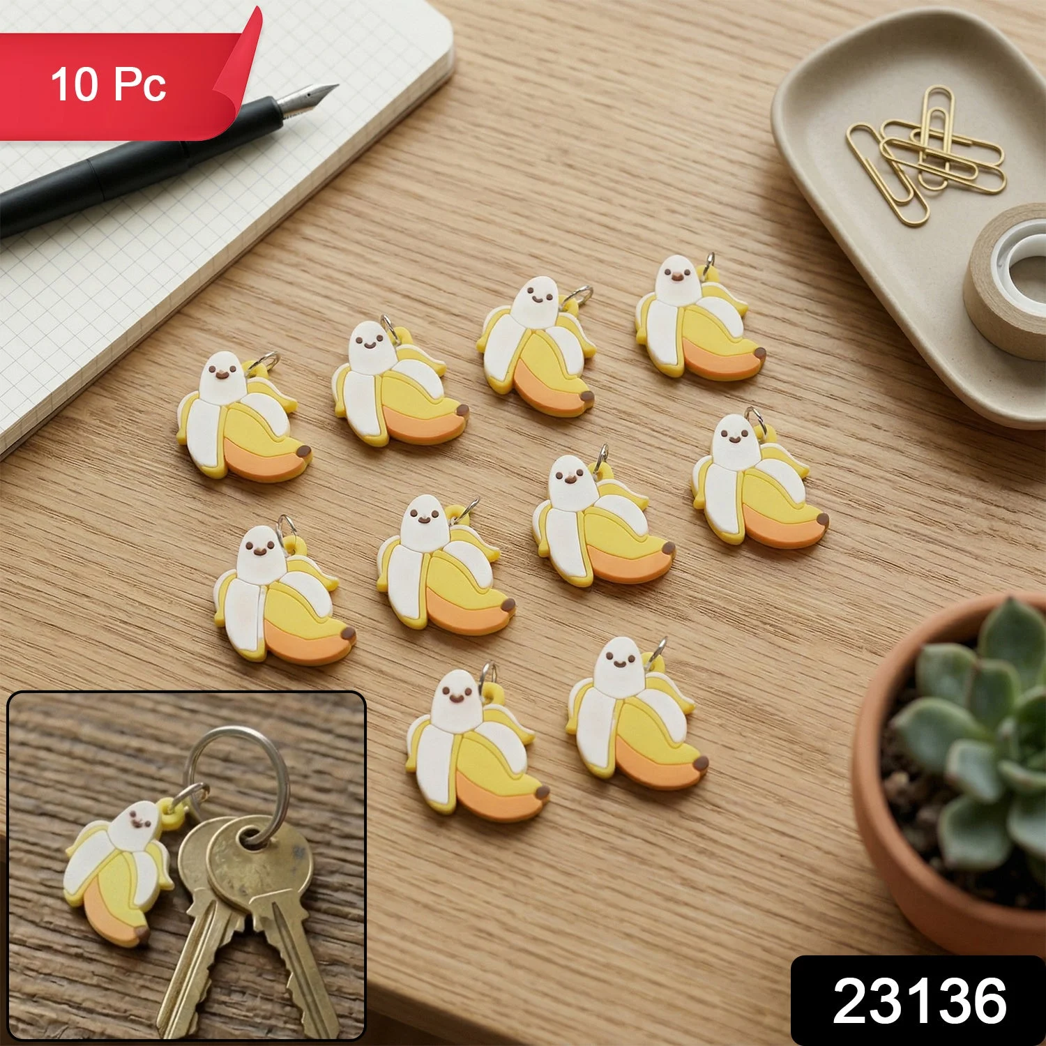Fun accessories help personalize everyday bags and key collections. The Cute Cartoon Banana Bag Charm Keychain Set (10 Pc) features playful fruit-inspired designs that brighten backpacks and handbags. This cartoon banana bag charm keychain set adds cheerful decoration to daily accessories.