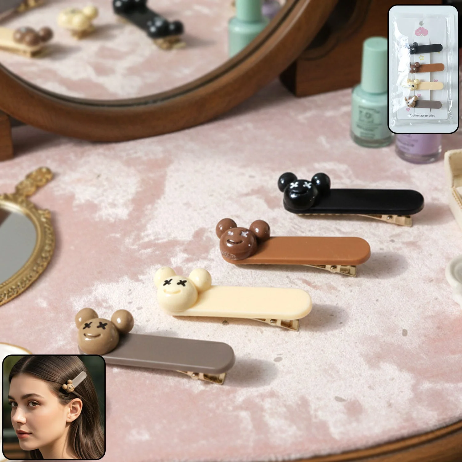cute cartoon bear design hair clips, premium fashion hair clips for girls, stylish snap hair accessories for women, cartoon bear hair pins, daily wear hair clips for girls, party styling hair accessories, office look hair clips, casual hairstyle snap clips, trendy cute hair barrettes, decorative bear design hair accessories, girls fashion hair snap pins, adorable cartoon hair clips