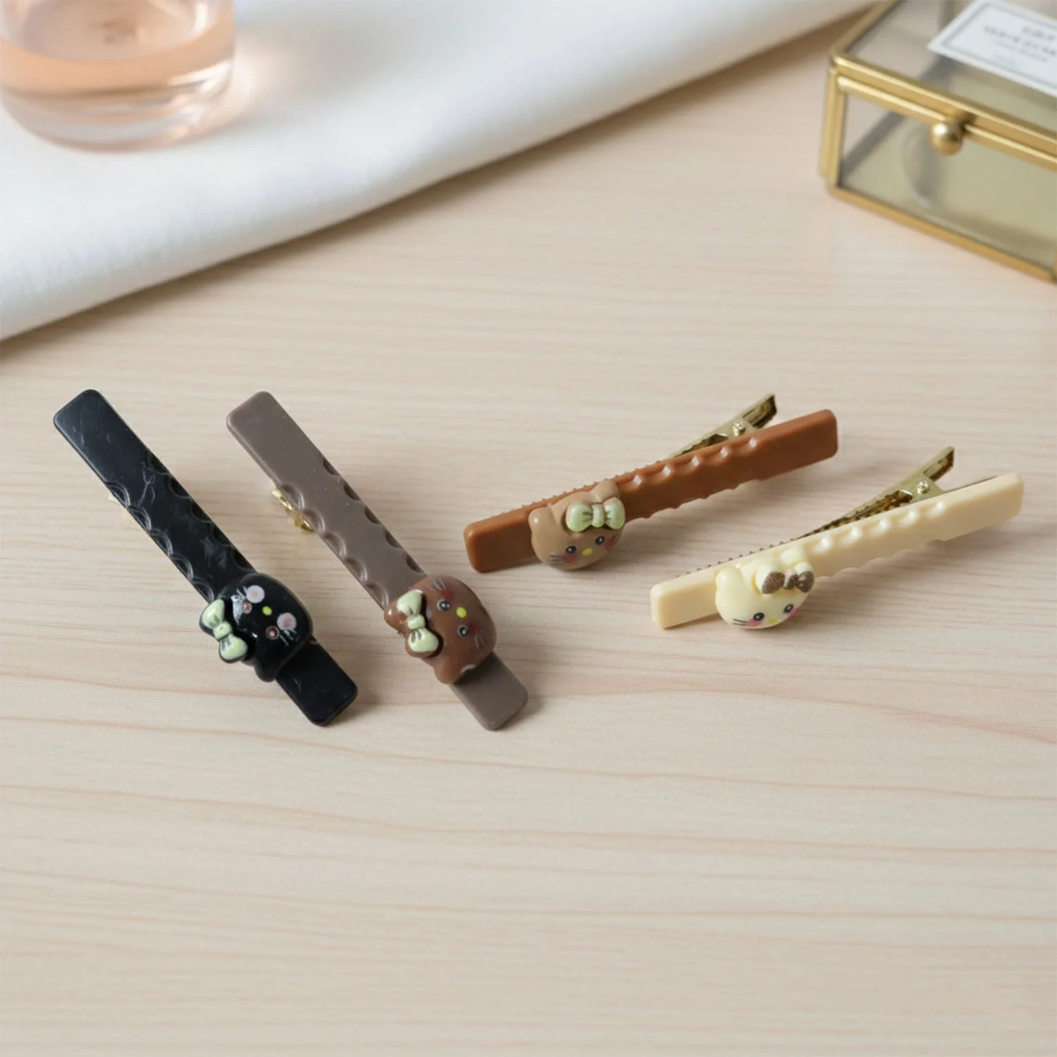 cute cartoon cat hair clips, cat design hair clips set, hair clips for girls and women, decorative snap hair pins, daily styling hair clips, party wear hair accessories, 4 pc hair accessories combo, cute cat hair pins, cartoon animal hair clips, fashion hair clips for women, girls hair clip set, playful hair accessories, snap hair clips set