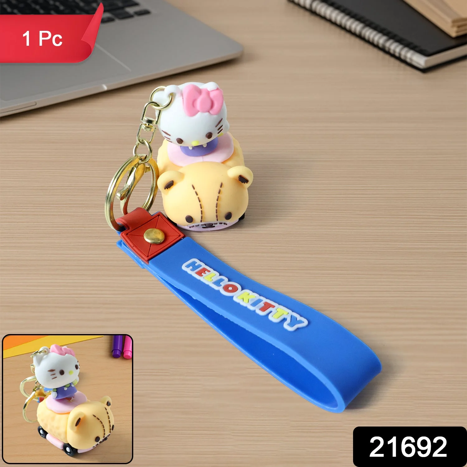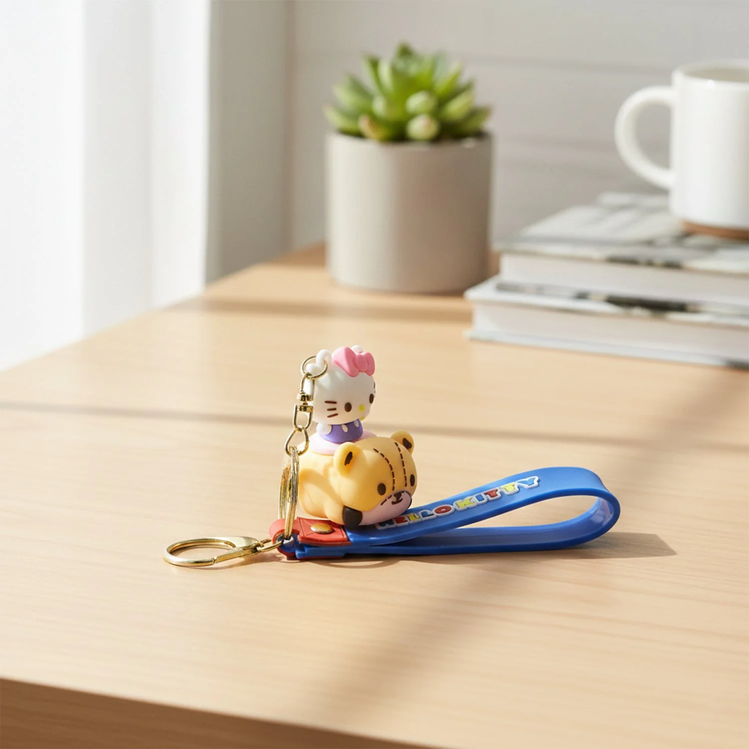 This cute cartoon-style silicone keychain is designed to add charm and fun to your everyday essentials. Featuring a playful cat figure riding a toy-style base along with a flexible wrist strap, it works as both a decorative accessory and a practical key holder. The soft-touch build offers a comfortable grip while the sturdy metal ring keeps keys securely attached. Ideal for daily use, this keychain enhances bags, backpacks, and keys with a cheerful, eye-catching look suitable for all age groups.