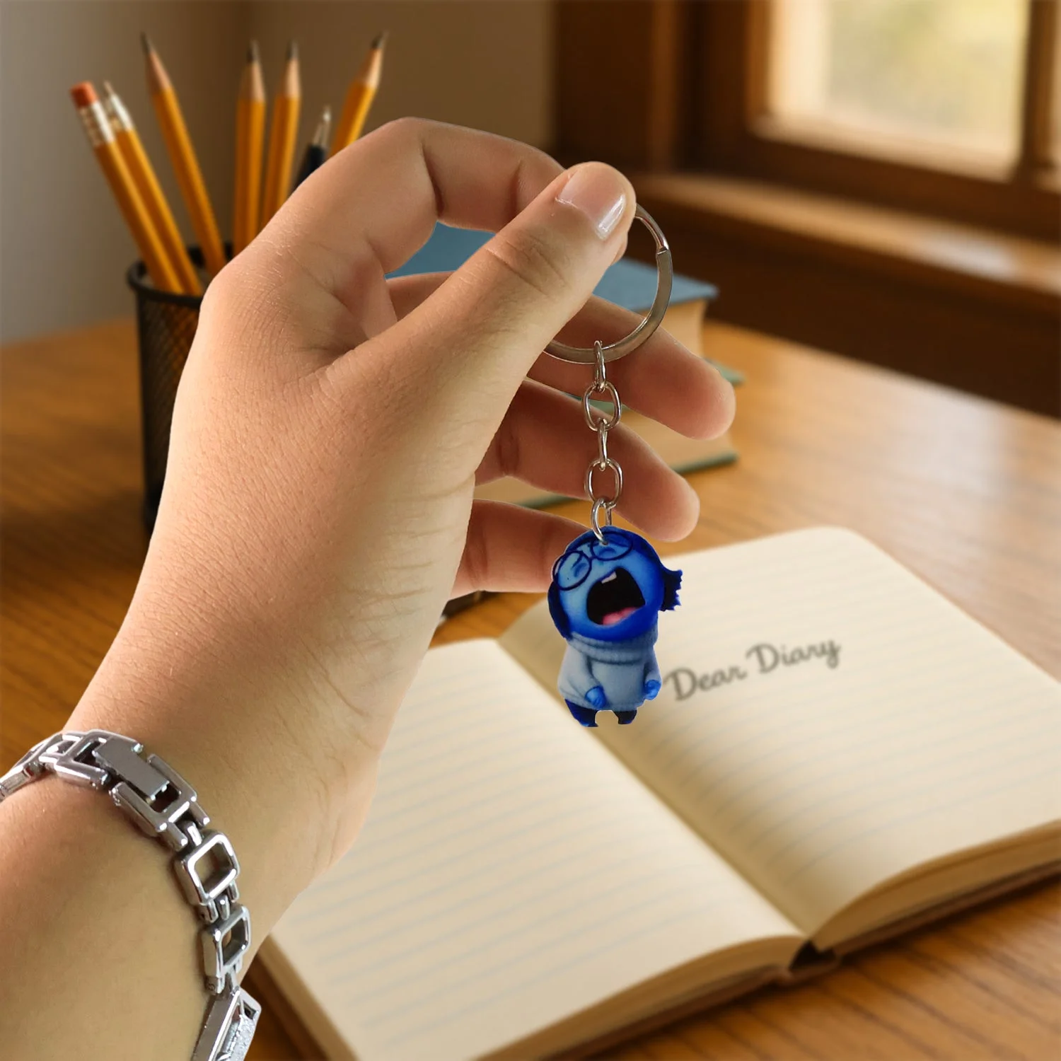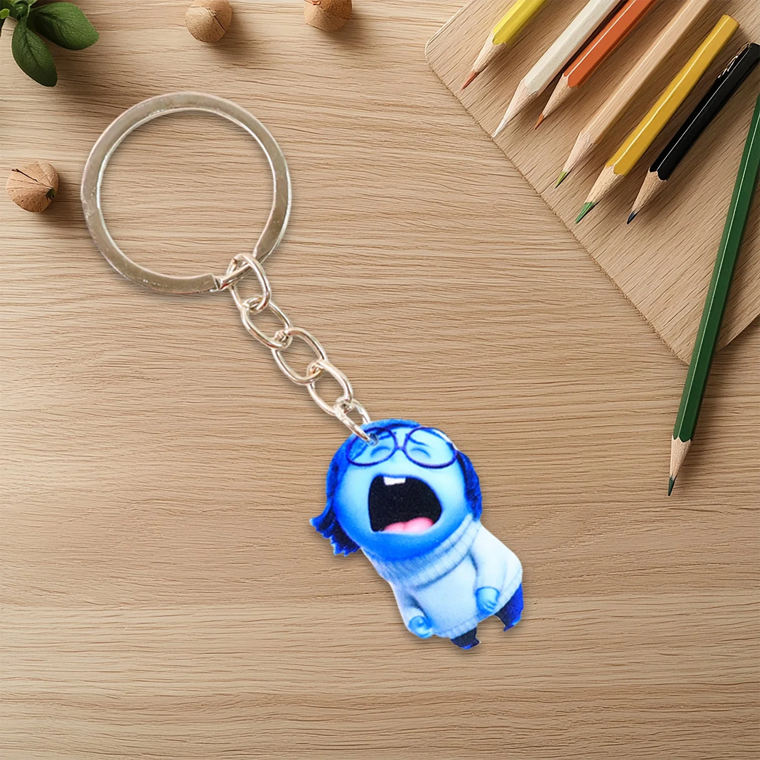 keychain, character keyring, cartoon key holder, keychain with charm,cute key accessory,school bag accessory, backpack charm,blue emotion keychain, animated character keyring,expressive emoji keyring