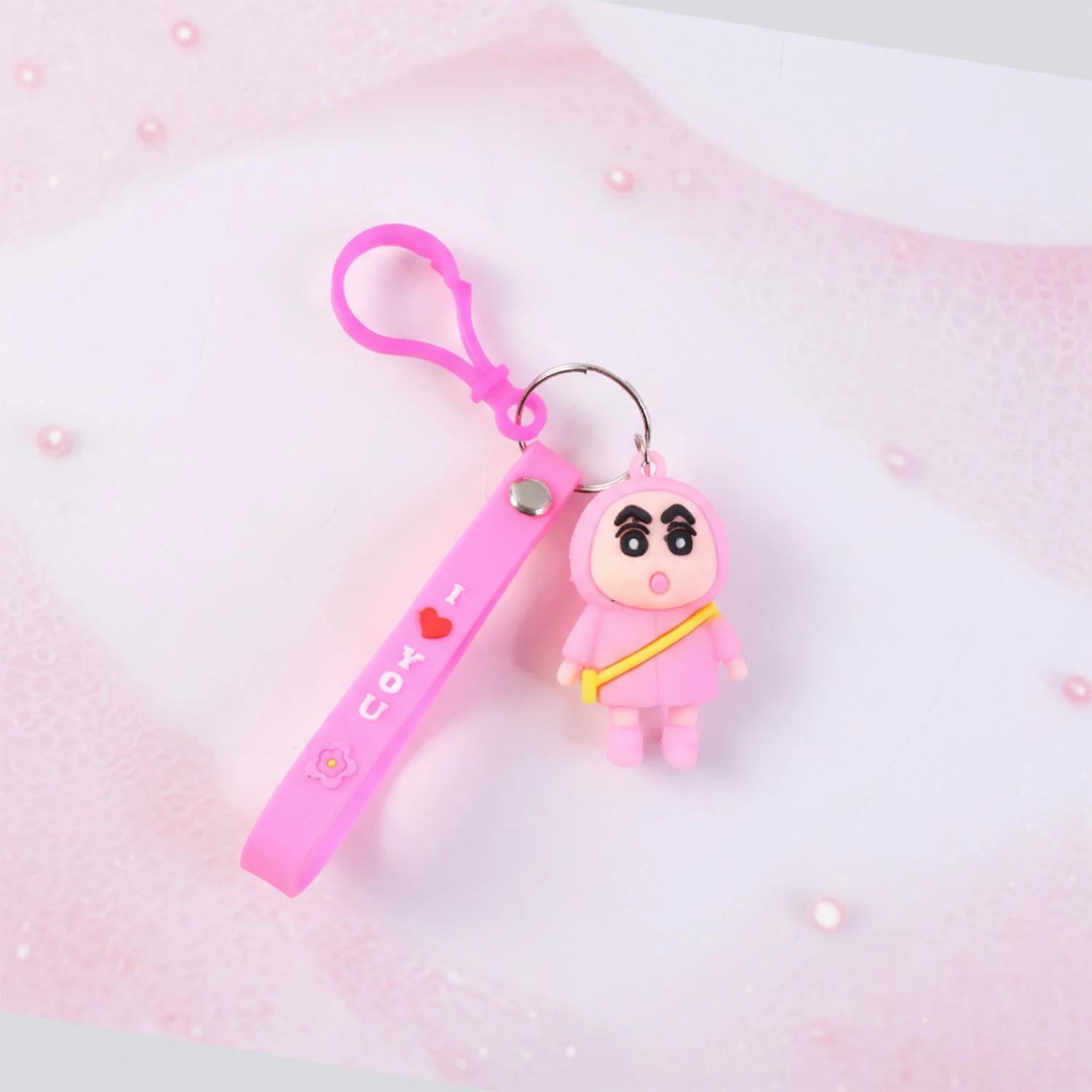 cute cartoon doll keychain, cartoon figure key holder, pink strap keychain, decorative doll key ring, character keychain with clip, hanging clip keychain, bag charm doll keychain, backpack accessory keychain, stylish cartoon key holder, trendy keychain for girls, cute EDC keychain accessory, doll figure bag charm, pink decorative key ring