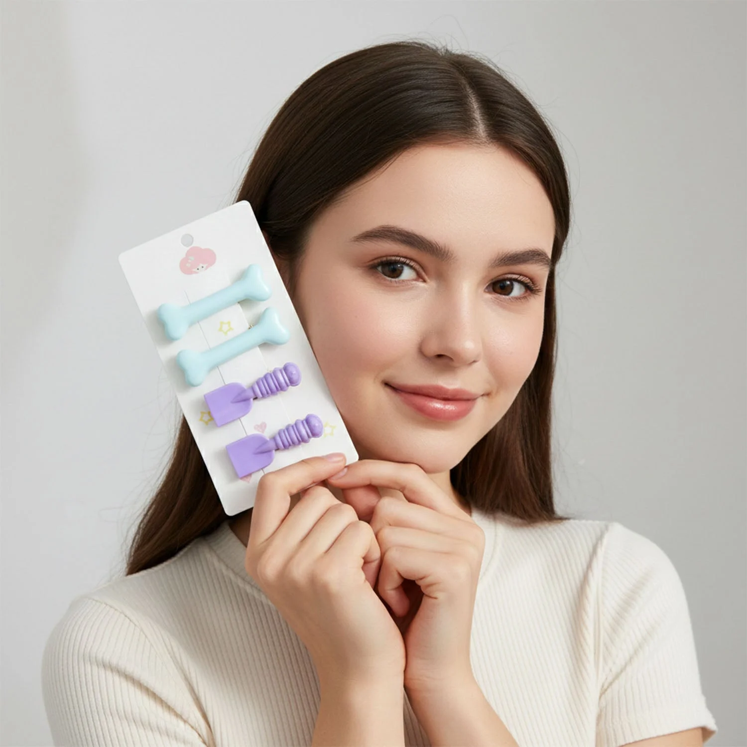 Cute Cartoon Hair Clip Set for Kids – Decorative Bone & Spade Shape Hair Pins for Girls Daily Wear, School & Casual Styling (4 Pc)
