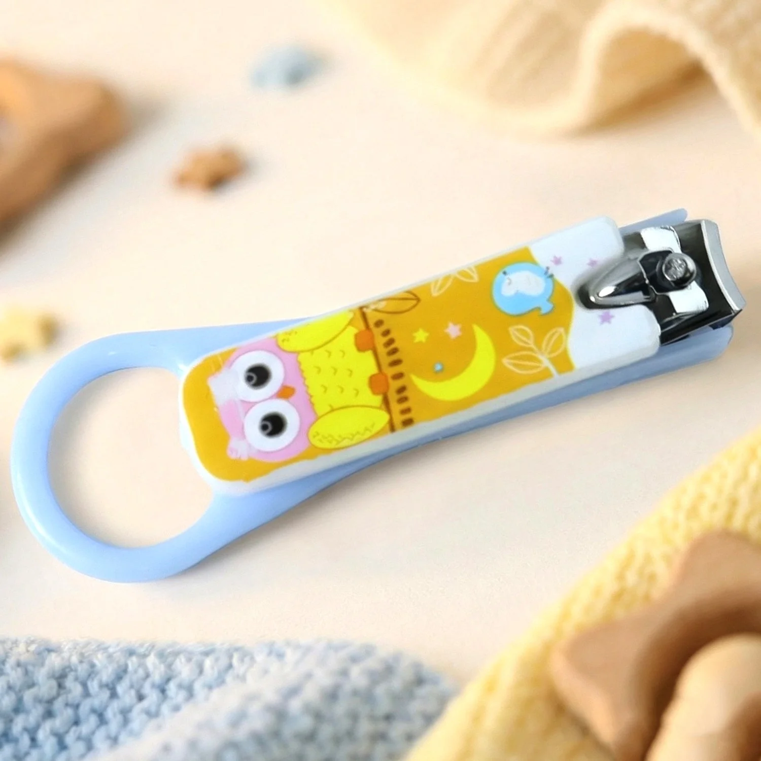 cute cartoon owl baby nail clipper, safety grip baby nail cutter, gentle stainless steel blade, infant nail trimmer, kids nail grooming tool, easy-hold baby nail clipper, baby nail care accessory, toddler nail cutter, safe nail trimming tool for infants, portable baby nail clipper, ergonomic baby nail trimmer, child-friendly nail grooming tool, newborn nail clipper with handle