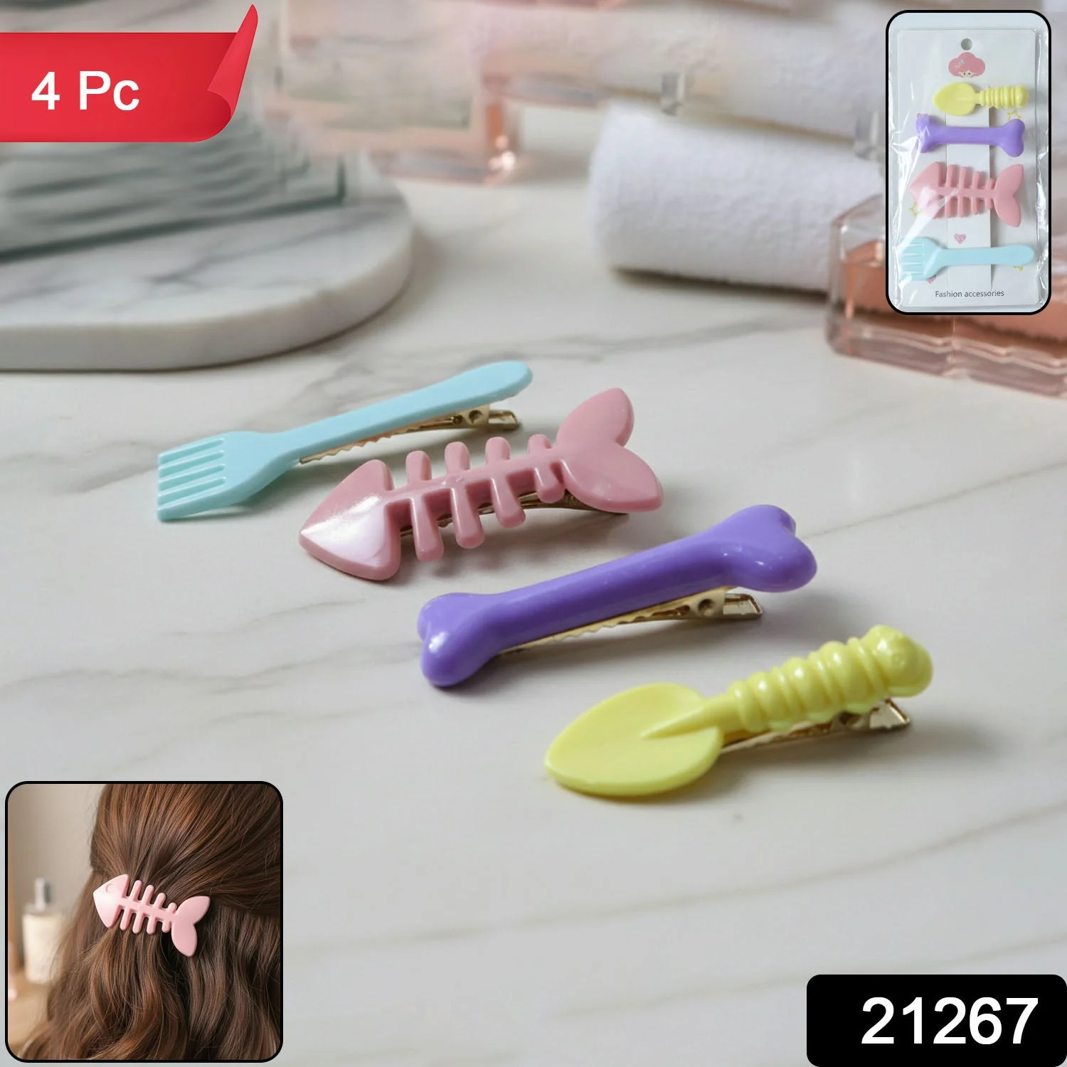 Cute Cartoon Shape Hair Clips for Girls & Kids – Decorative Hair Accessories for Daily Styling – 4 Pc Set
