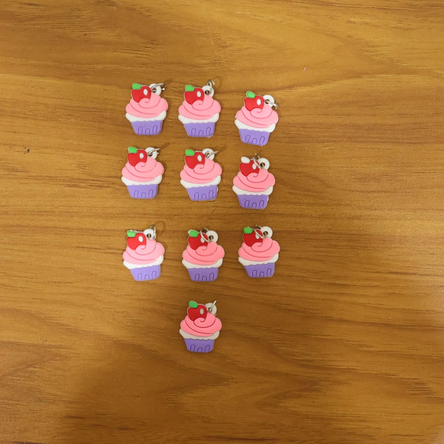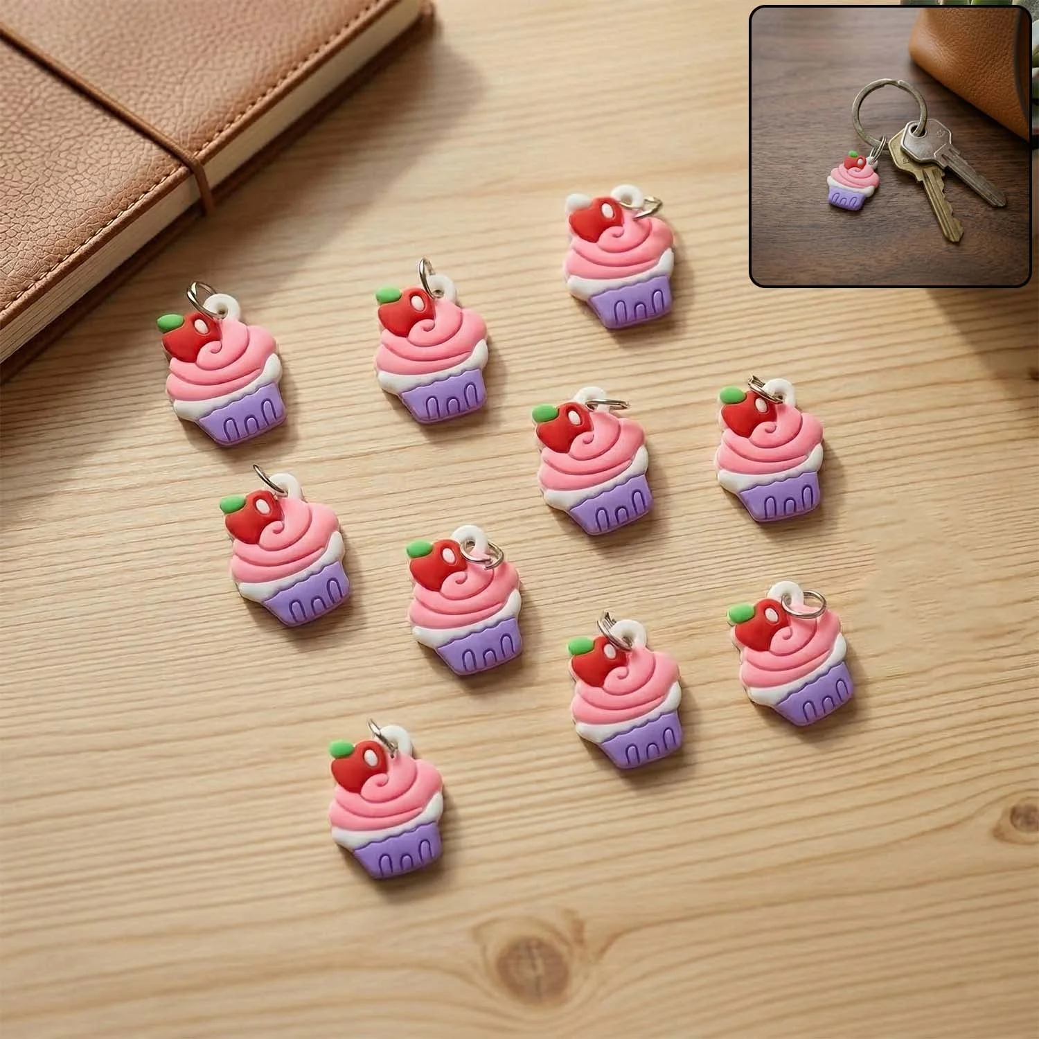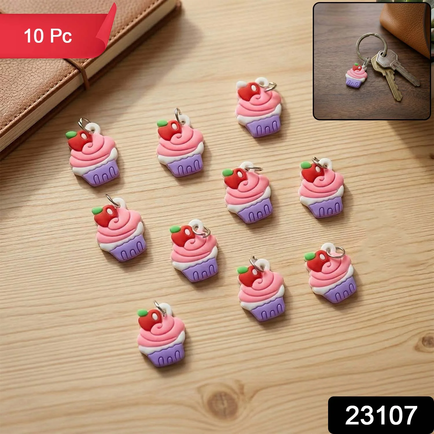 Cute Cupcake Shape Bag Charm Keychain Set 10 Pc Decorative Soft Rubber Key Ring Set for Keys Bags Accessories Return Gift Combo 10 Pc