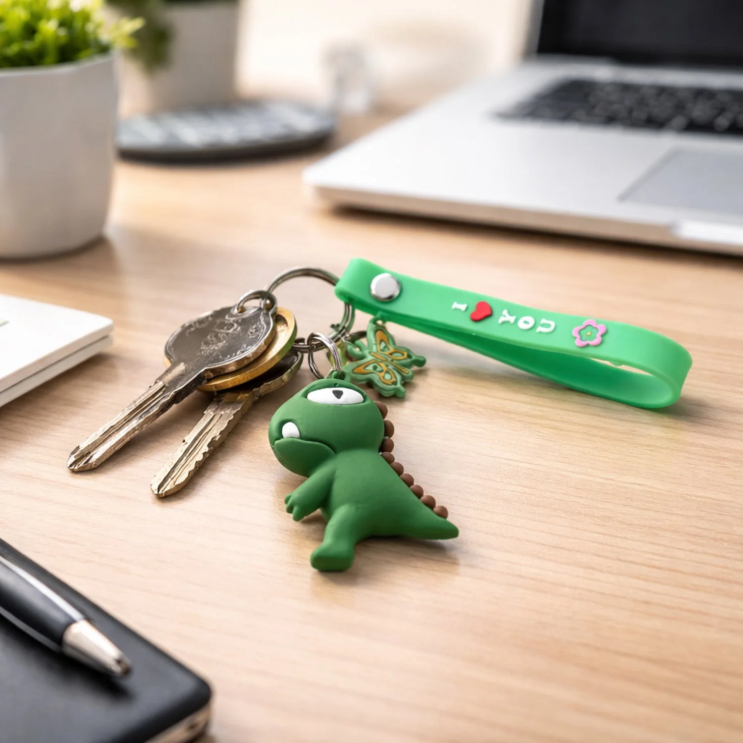 Add a fun and playful touch to your everyday essentials with this cute dinosaur cartoon keychain featuring a flexible silicone strap and sturdy key ring. Designed with an attractive character charm, this keychain works perfectly as a decorative accessory for keys, backpacks, handbags, and school bags. The durable strap provides a comfortable grip and secure hold, making it easy to attach and carry. Lightweight and stylish, it is ideal for kids, students, and anyone who loves cute accessories. A practical yet charming addition to your daily carry items.