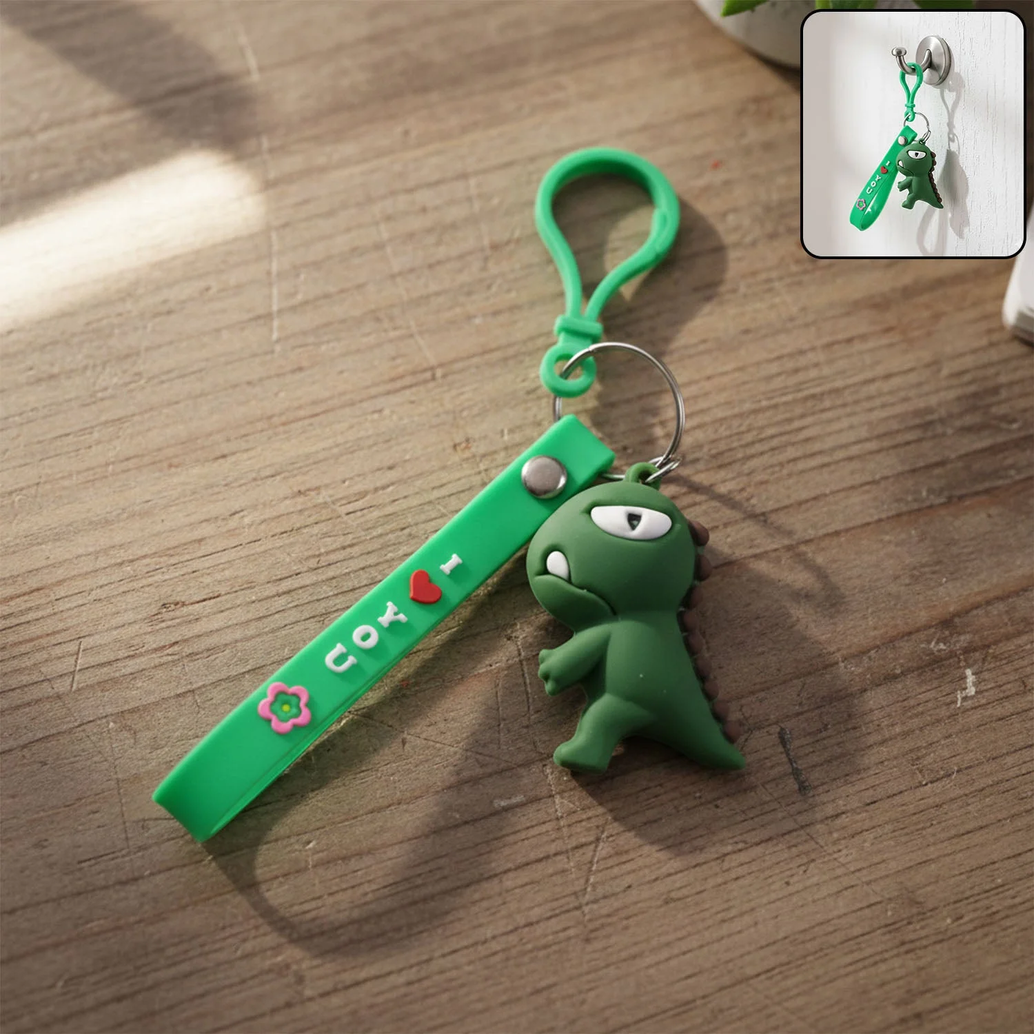 cute dinosaur cartoon keychain, silicone dinosaur keychain with wrist loop, decorative key ring charm, keychain for keys and bags, daily use silicone keychain, dinosaur charm keyring, wrist strap keychain accessory, bag charm keychain, novelty silicone key holder, kids dinosaur keychain, portable wrist loop keychain, fun dinosaur keyring charm