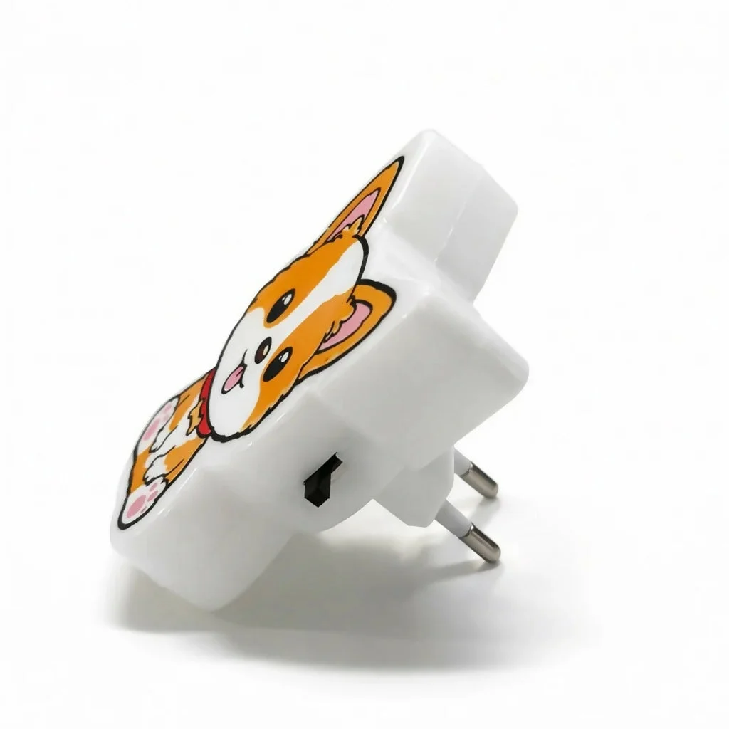 Create a warm and cozy atmosphere with this adorable dog-shaped plug-in night light. Designed with a cute smiling face and soft glowing light, it provides gentle illumination perfect for bedtime. Simply plug it into a wall socket for instant use, making it ideal for kids’ rooms, nurseries, or bedside lighting. Its charming design doubles as a decorative piece while offering comfort during the night.