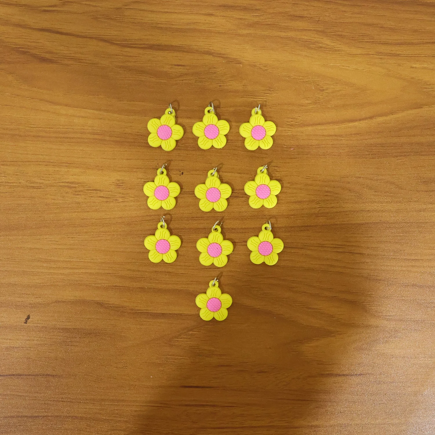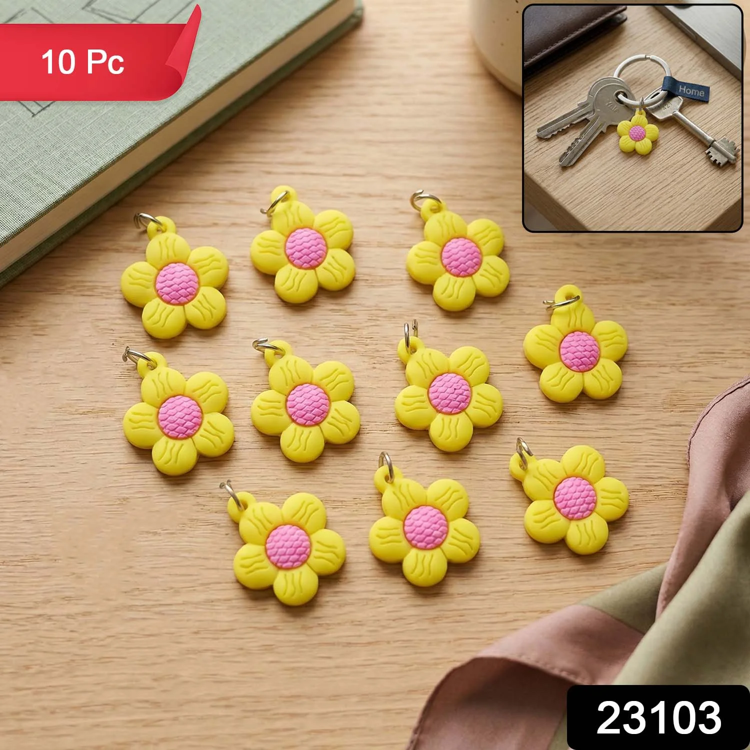 Cute Flower Shape Bag Charm Keychain Set 10 Pc Decorative Soft Rubber Key Ring Set for Keys Bags Accessories Return Gift Combo 10 Pc