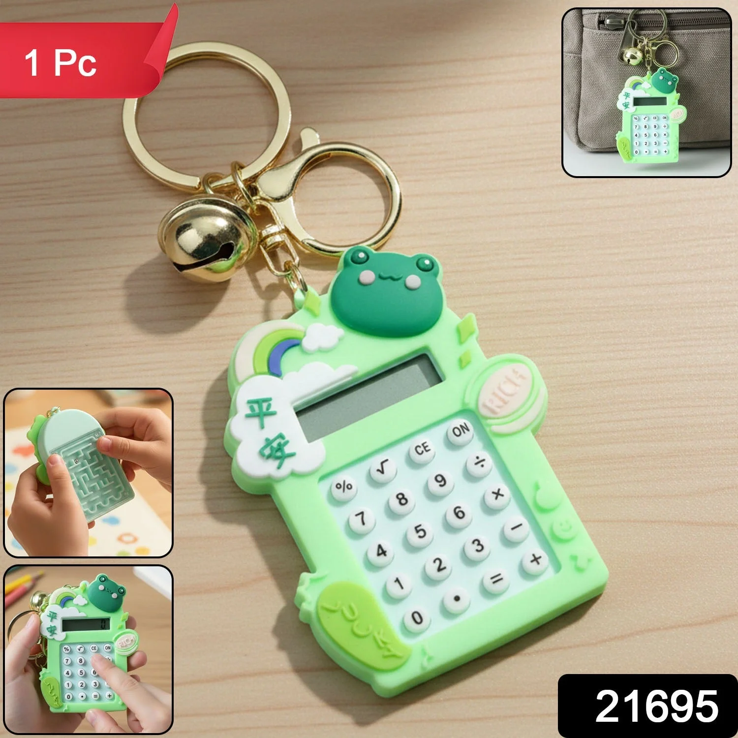 This cute frog cartoon mini calculator keychain is a fun and practical accessory designed for everyday convenience. Featuring an adorable frog theme with bright colors, it combines a functional digital calculator with a stylish keychain charm. The compact size makes it easy to carry in pockets, school bags, pencil cases, or handbags, while the attached metal key ring and bell add both durability and decorative appeal. Ideal for quick calculations at school, home, or while traveling, this calculator keychain is perfect for kids, students, and stationery lovers who enjoy cute yet useful accessories.