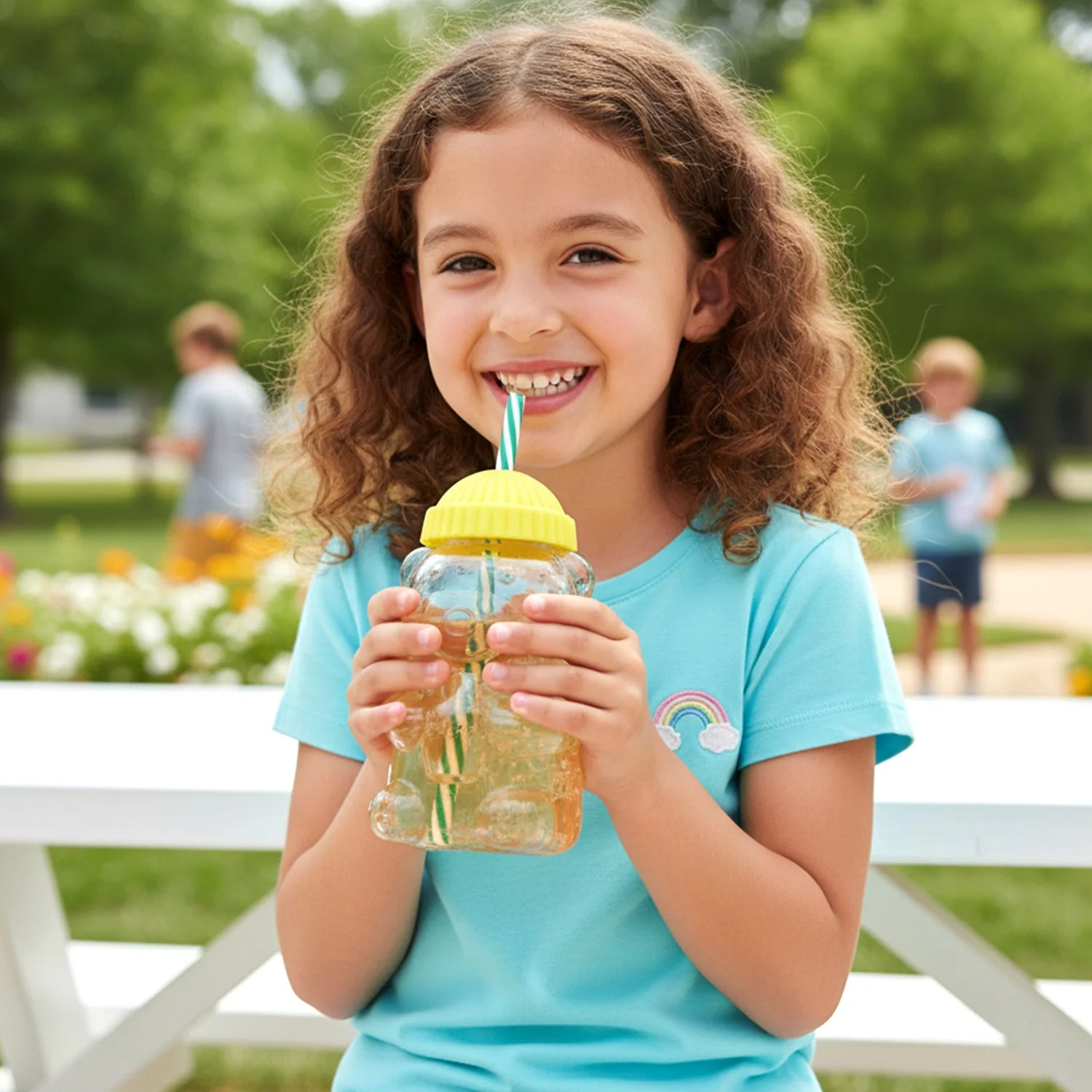 Make hydration fun and exciting with this kids water bottle with straw designed especially for children. Featuring an adorable bear-shaped body with a secure lid and built-in straw, this kids water bottle encourages children to drink water, juice, or other beverages easily. The 350ml cute water bottle for kids is lightweight and easy to hold, making it perfect for small hands.