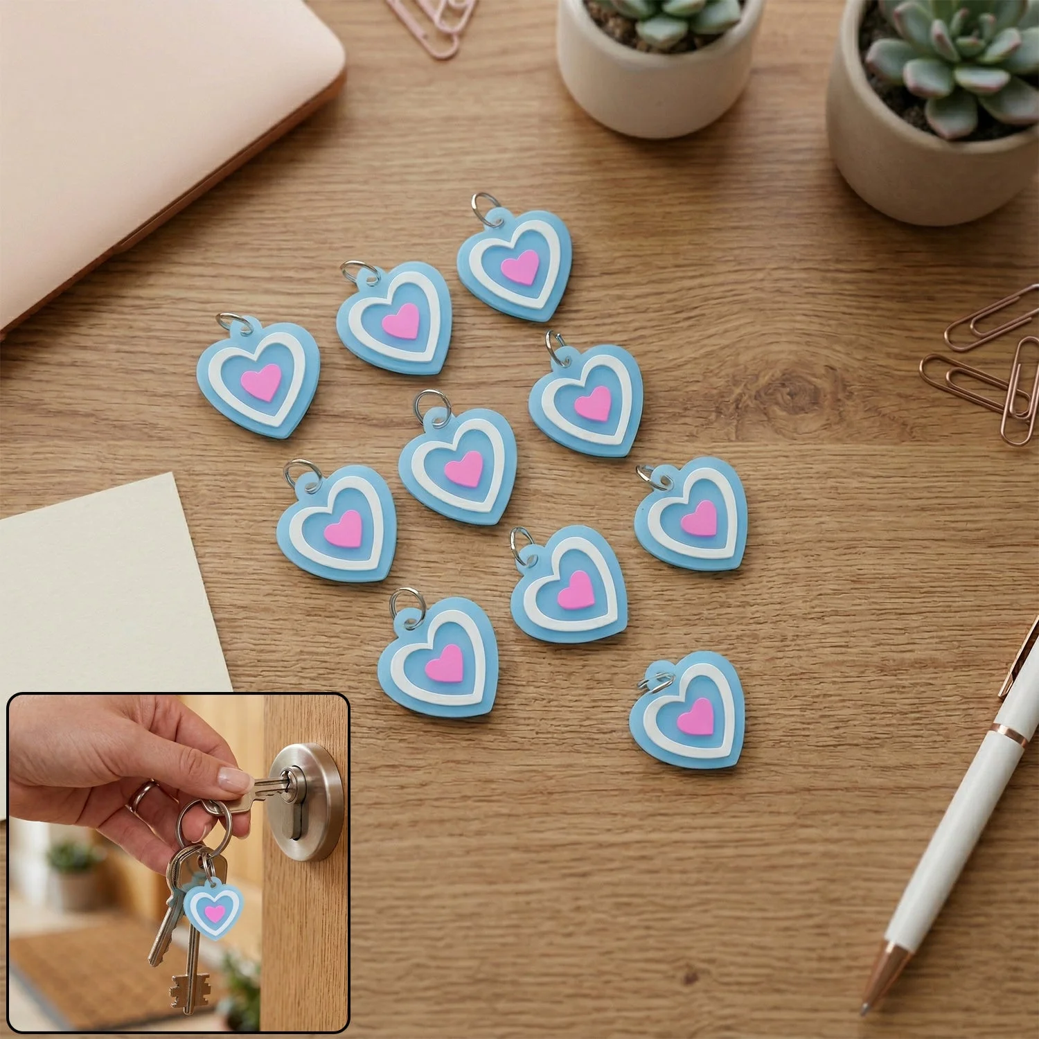 Cute Heart Shape Bag Charm Keychain Set 10 Pc Stylish Soft Rubber Key Ring Set for Keys Bags Accessories Return Gift Combo 10 Pc