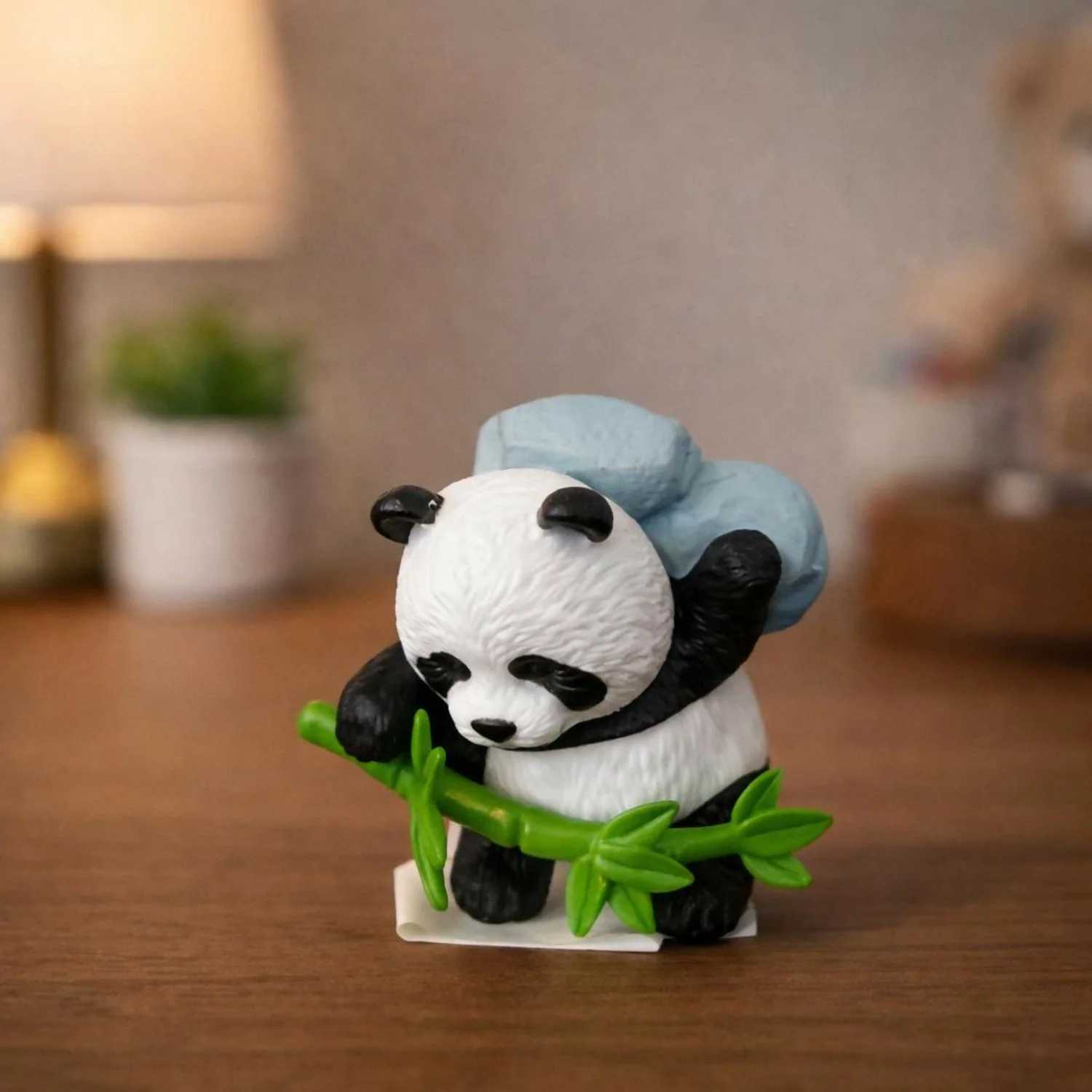 🐼 Adorable Panda Design – Cute panda holding bamboo in a detailed mini figurine