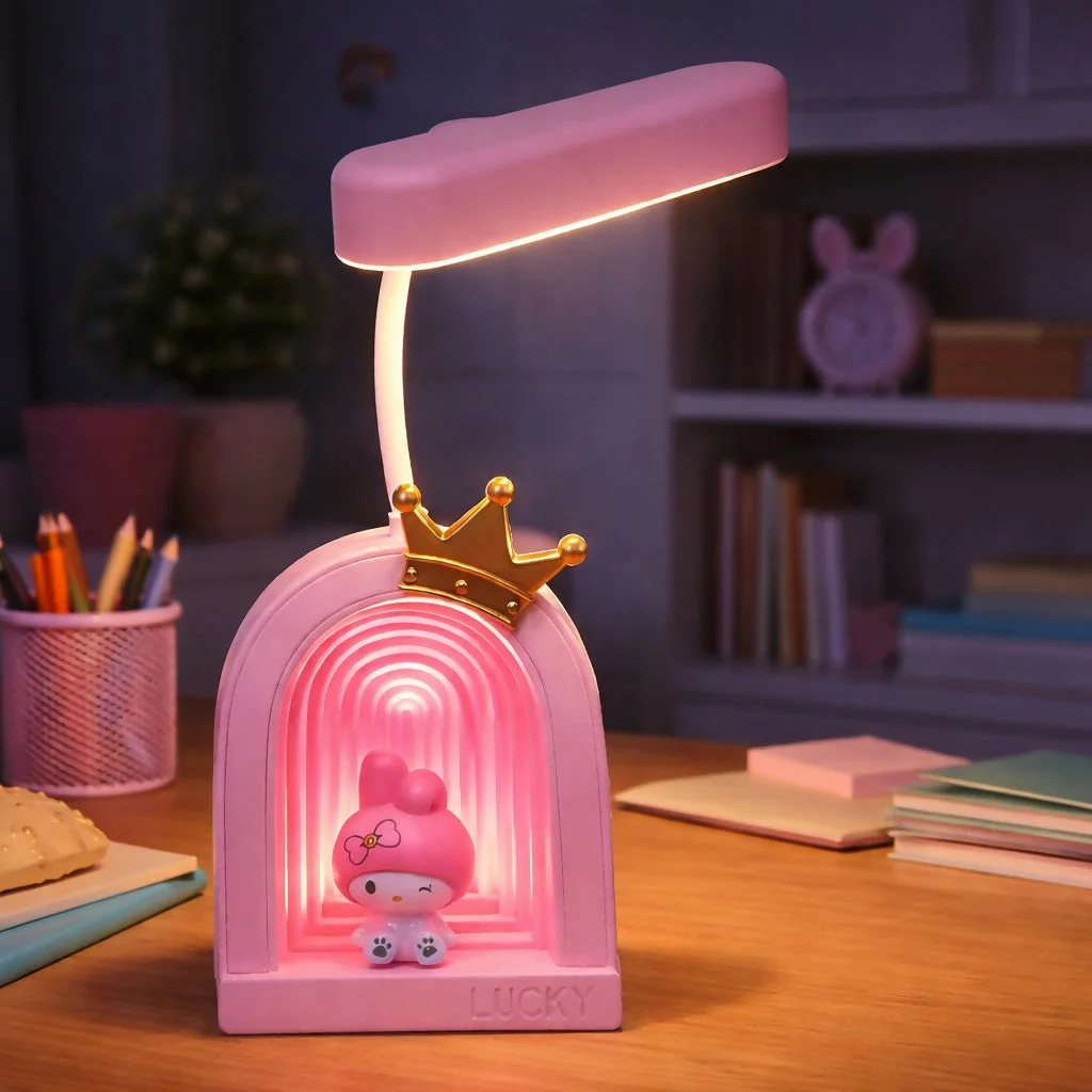 Add a magical touch to your child’s room with this adorable princess-themed LED desk lamp. Designed with a cute character inside an arch-style frame and a crown detail on top, this lamp provides soft, eye-friendly lighting perfect for studying, reading, or bedtime. The flexible neck allows easy adjustment of light direction, while the warm glow creates a cozy and comforting atmosphere. Ideal as both a functional desk lamp and a decorative night light, it enhances any kids’ room, study table, or bedside setup.