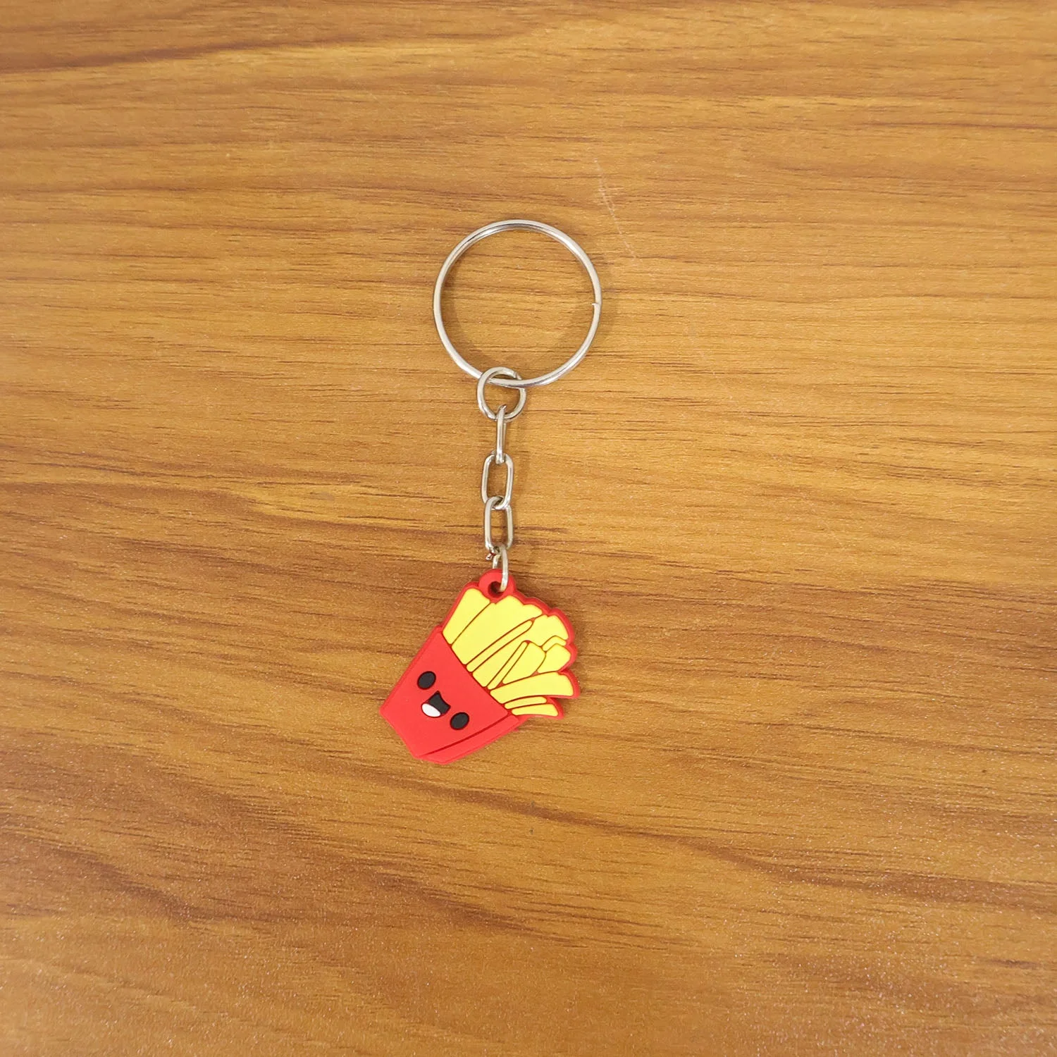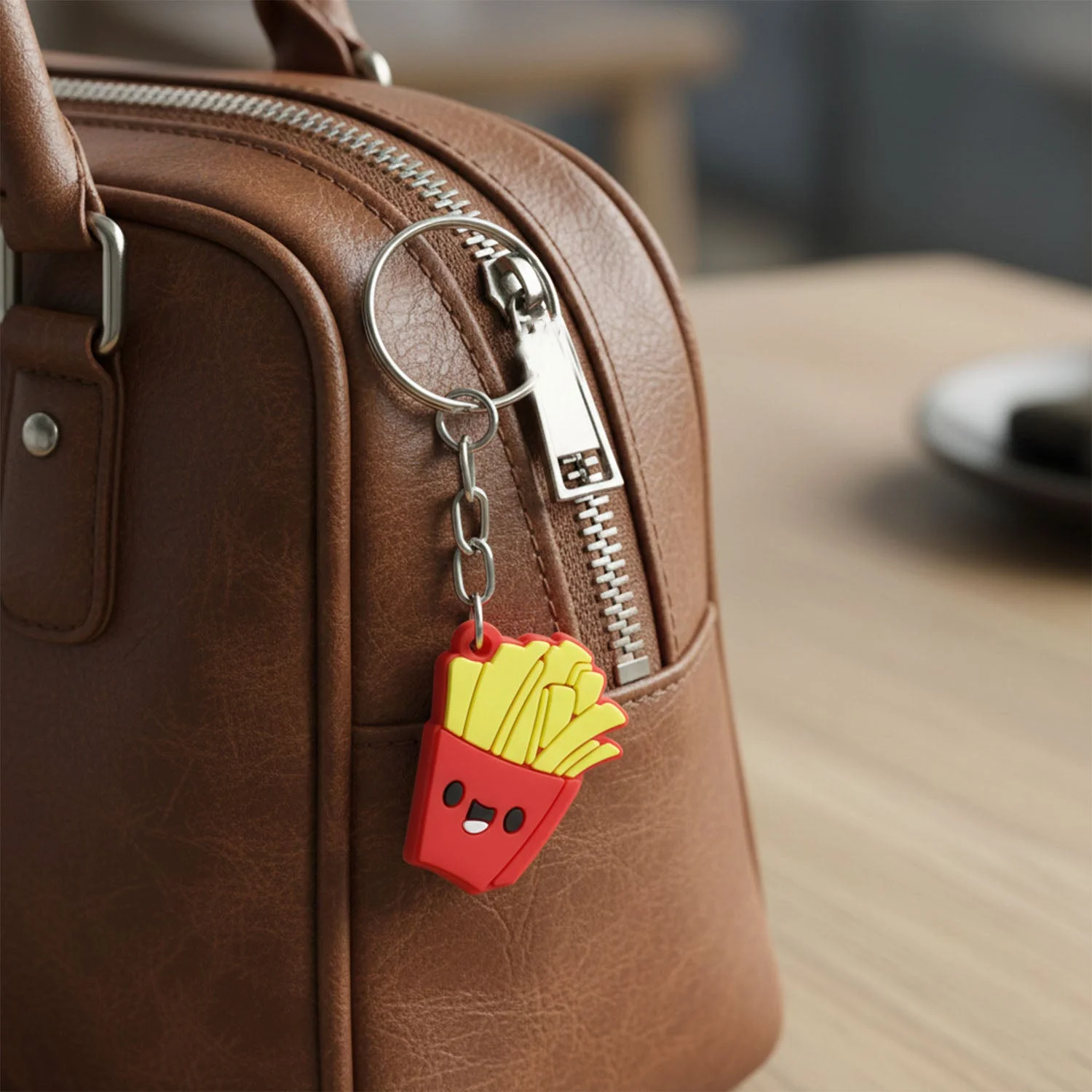 This cute smiley French fries shaped keychain is a fun and eye-catching accessory designed to add a playful touch to everyday essentials. Featuring a cheerful cartoon fries character with a happy expression, it instantly enhances the look of keys, backpacks, handbags, and pouches. The lightweight design makes it comfortable to carry daily without adding unnecessary bulk, while the sturdy key ring ensures secure attachment. Its bright and cheerful appearance makes it suitable for all age groups and perfect for casual use. Whether used for organizing keys or as a decorative bag charm, this keychain combines functionality with fun styling.