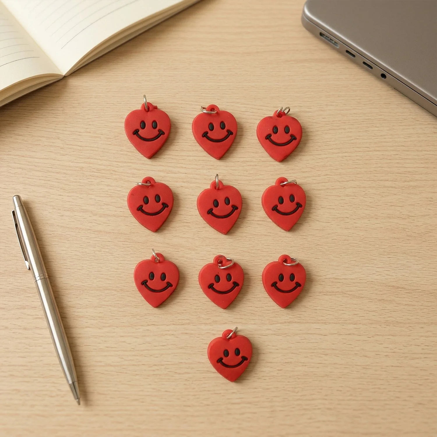 The cute heart smiley keychain set is perfect for decorating bags or sharing as small gifts. Each heart shape bag charm accessory features a cheerful smiley design that brightens everyday items. A delightful decorative smiley keychain charm and a trendy bag charm accessory for girls.