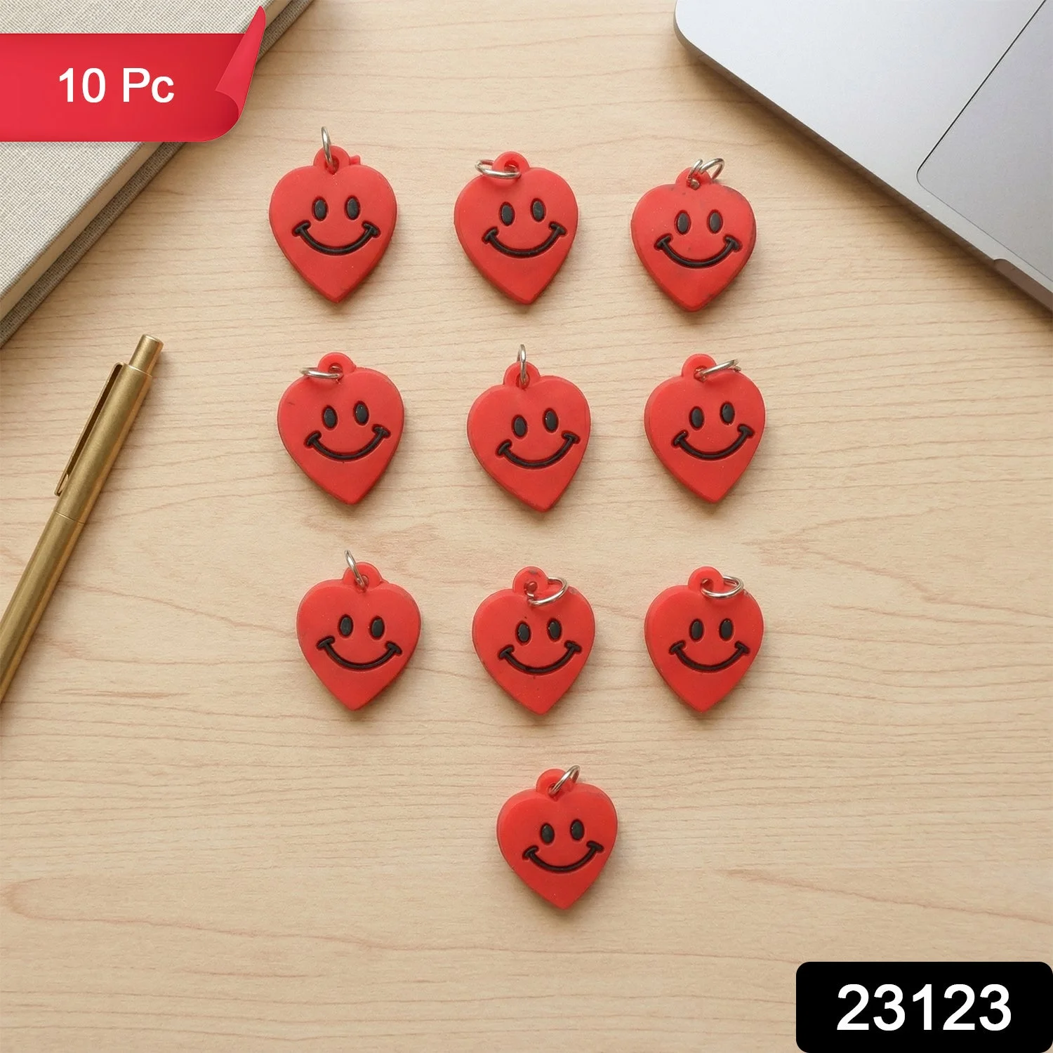 Cute Smiley Heart Shape Bag Charm Keychain Set Stylish Red Heart Emoji Design Key Rings for Keys, Handbags & Accessories Decorative Portable Key Holder Set 10 Pc