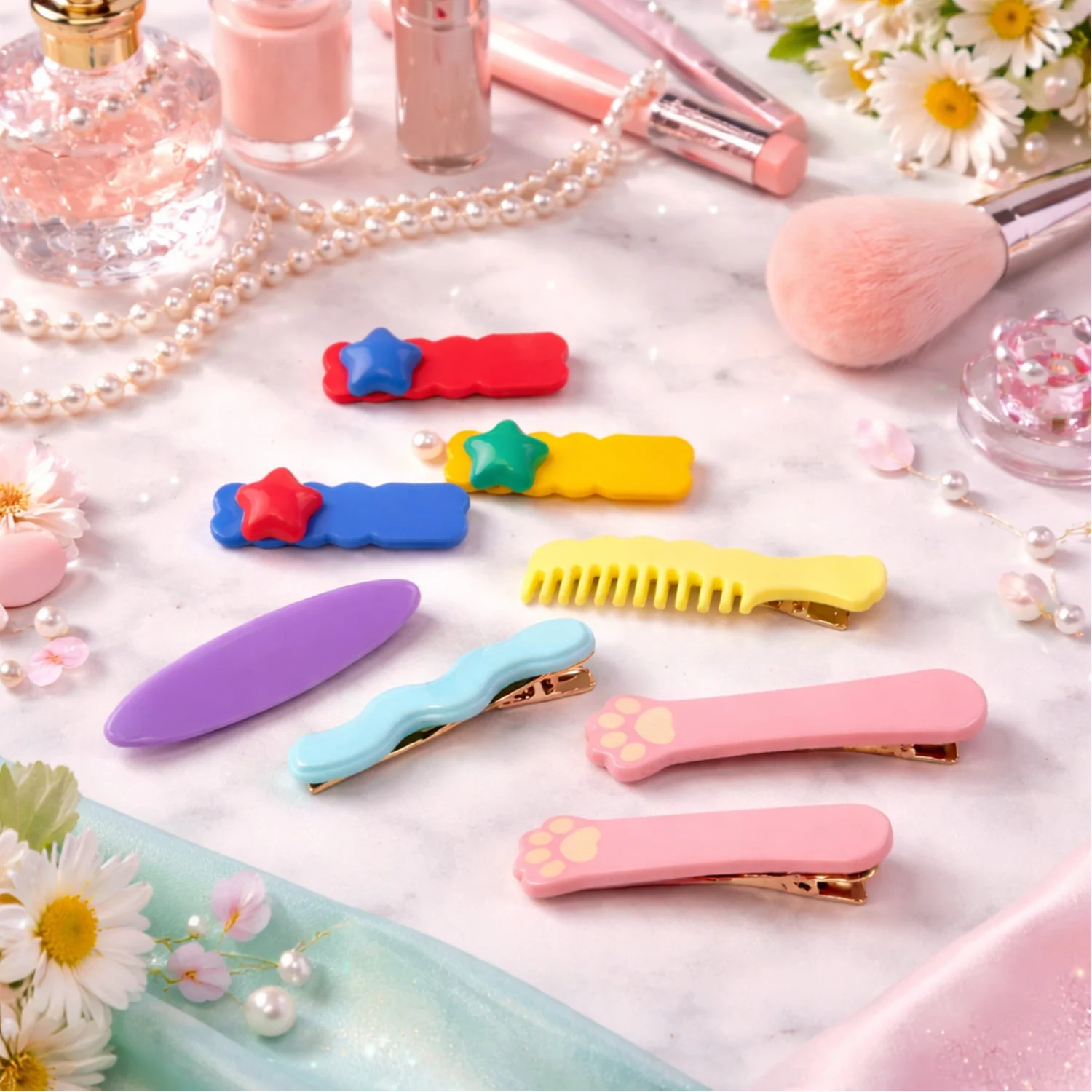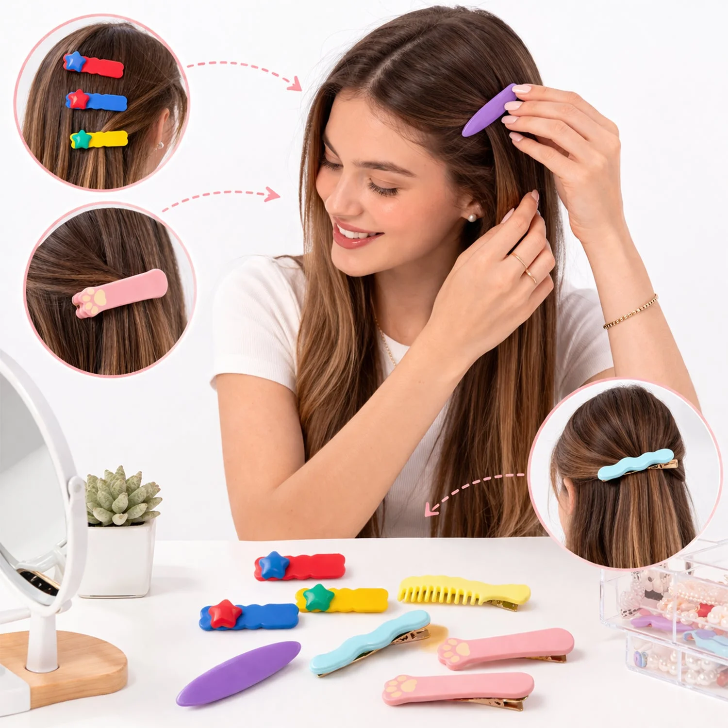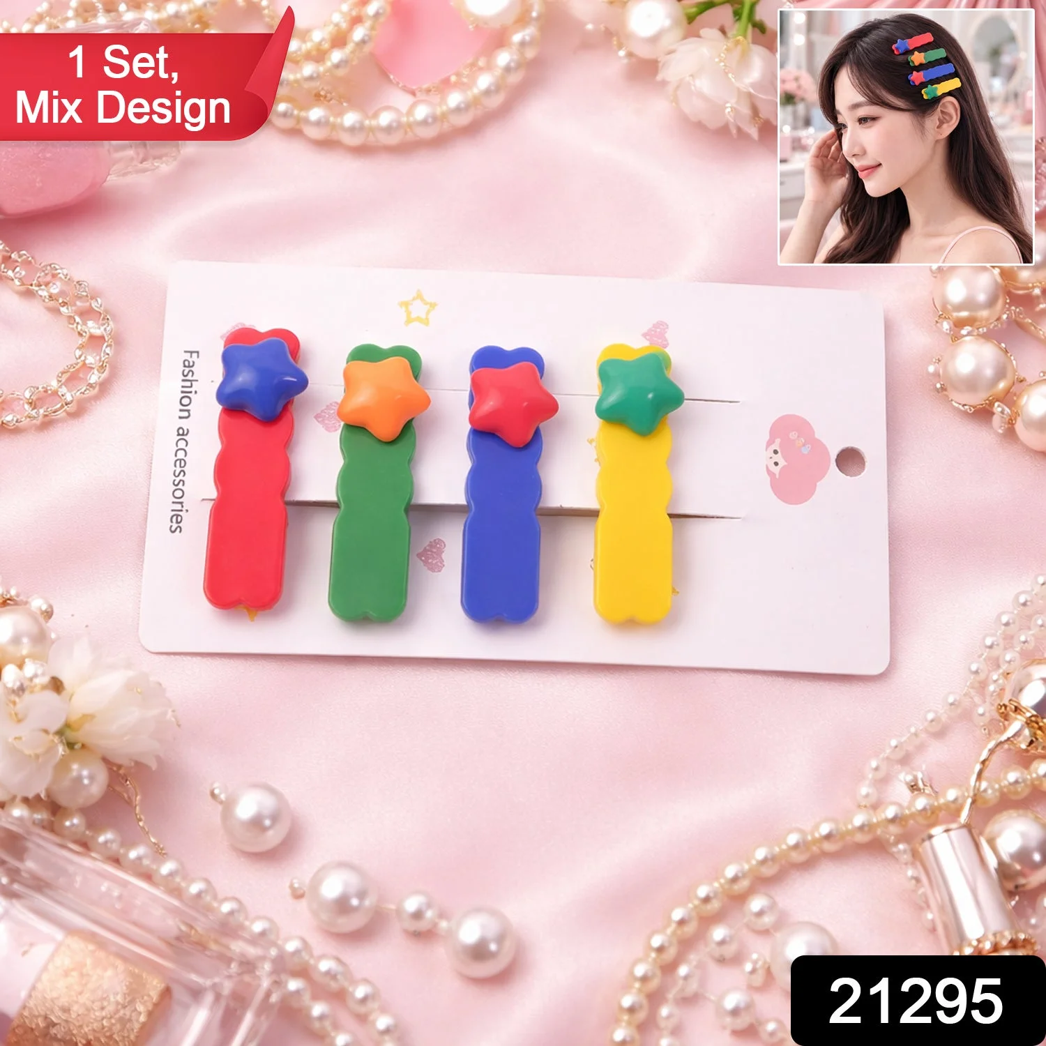 Cute Stylish Design Hair Clips Set for Girls Colorful Snap Hair Pins Mix Design Stylish Hair Accessories for Daily Wear & Styling 1 Set