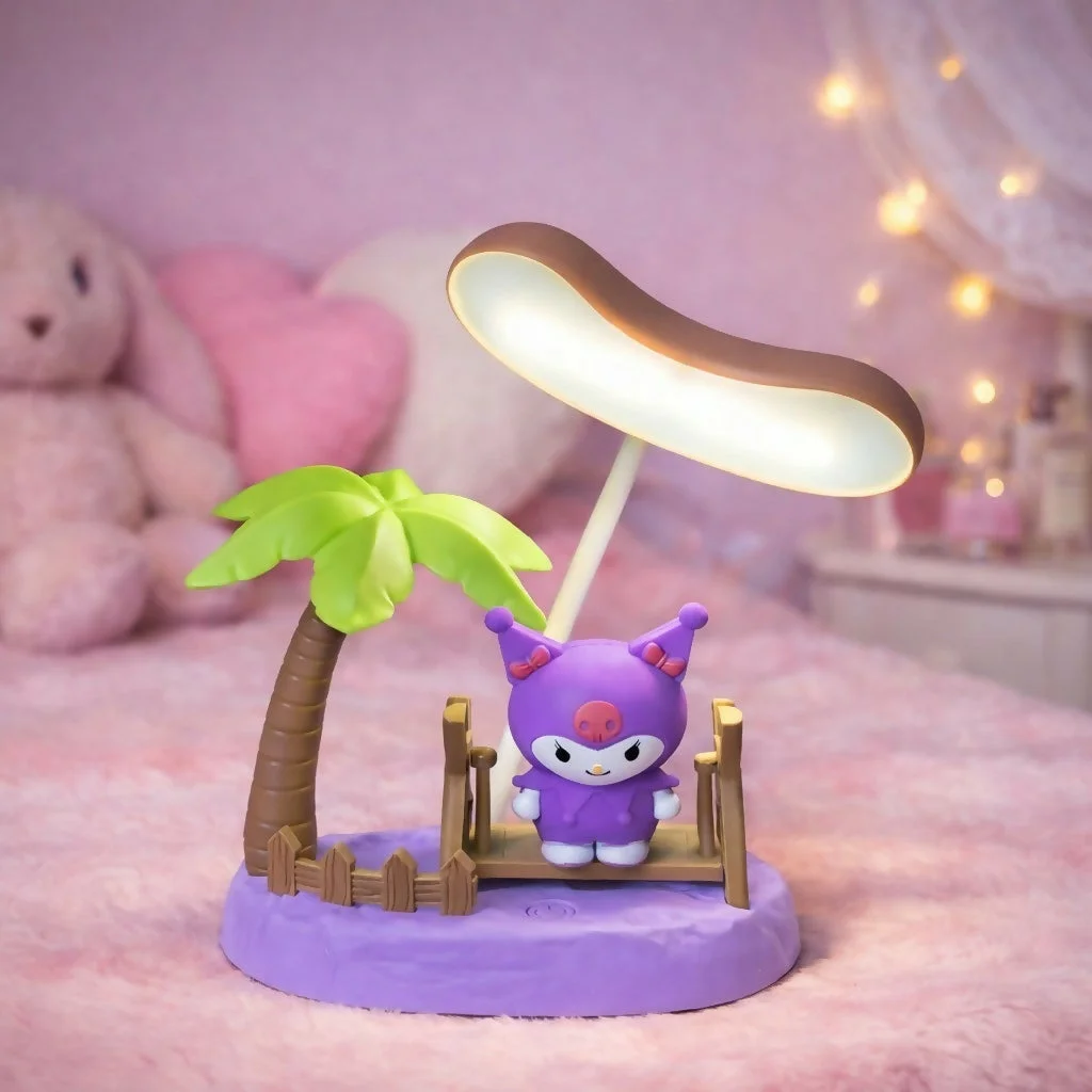Add charm and fun to your workspace with this adorable swing desk lamp. Featuring a cute character sitting on a mini swing beside a palm tree, this lamp is both decorative and functional. It comes with three versatile modes – swing mode, light mode, and combined swing with light mode – making it perfect for kids and creative spaces. The soft LED light provides a comfortable glow for studying, reading, or night use, while the swinging motion adds a playful touch. Ideal for desks, bedside tables, and gifting.